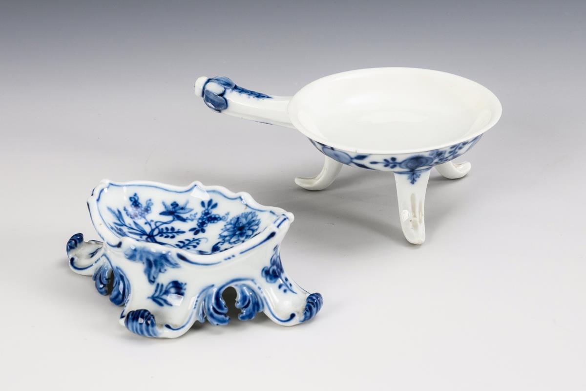 Barocke Zwiebelmuster-Saliere und -Eiertiegel. Meissen.
