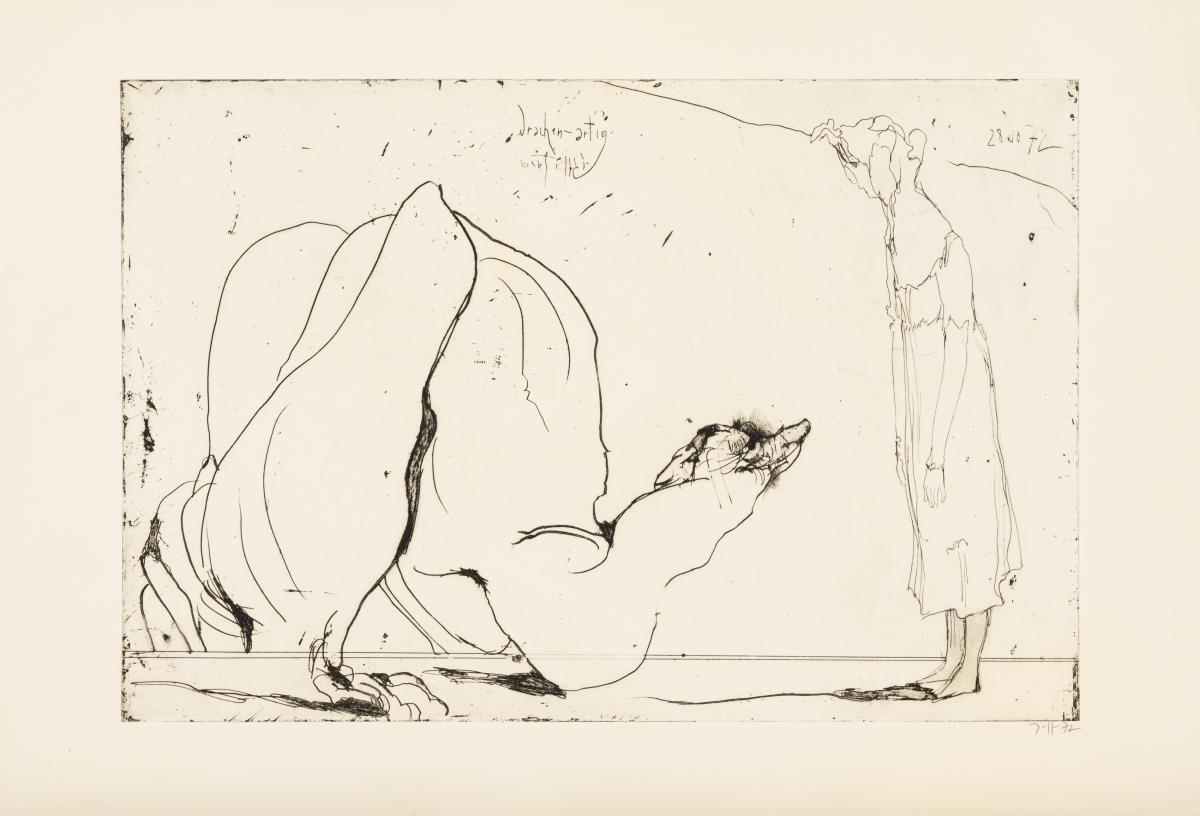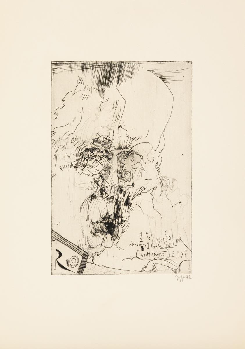 "Halbtot vor Glück oder auch ein Fabeltier", Griffelkunst 1972 | "Langenhorn: Kopie ohne Vorlage", Griffelkunst 1972, Blatt lichtgebräunt | "Heinrich Schwartz", Griffelkunst 1977 | "Gruß der Griffelkunst" | 2x "Tantchen Memo", Griffelkunst 1971 | "Für Griffelkunst", Griffelkunst 1971 | "Für Sächle zum 14.11.79", Griffelkunst 1979 | "Griffelkunst Langenhorn" | "Drachenartig bei Füssli", Griffelkunst 1972.