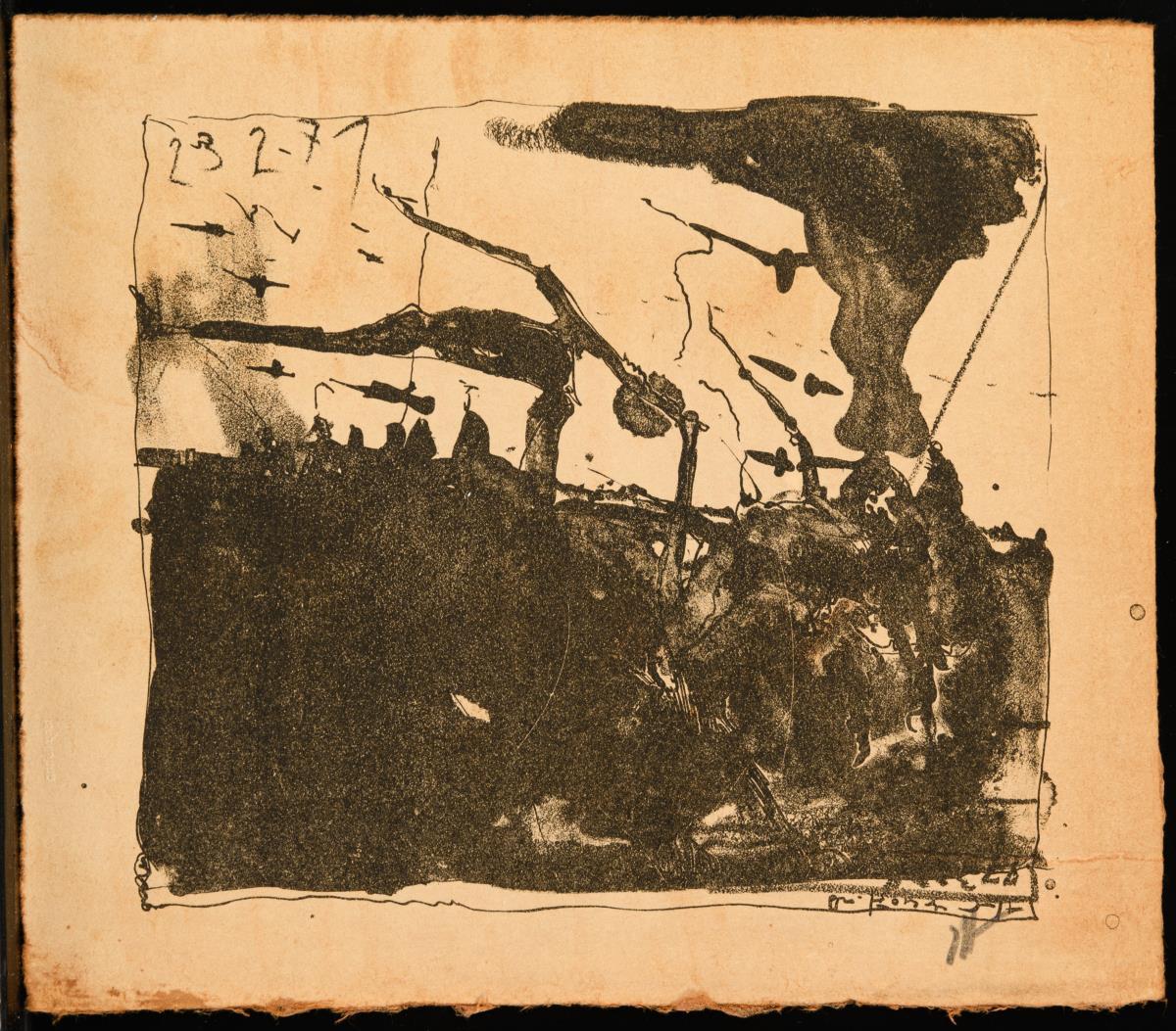 "23.2.71", Blatt lichtgebräunt | "1.3.73" | "Fuchs Widmungsexemplar außerhalb der Auflage", [19]66 | "Terpentin zur Probe" | "Landschaft"; je Griffelkunst-Vereinigung Hamburg e.V..