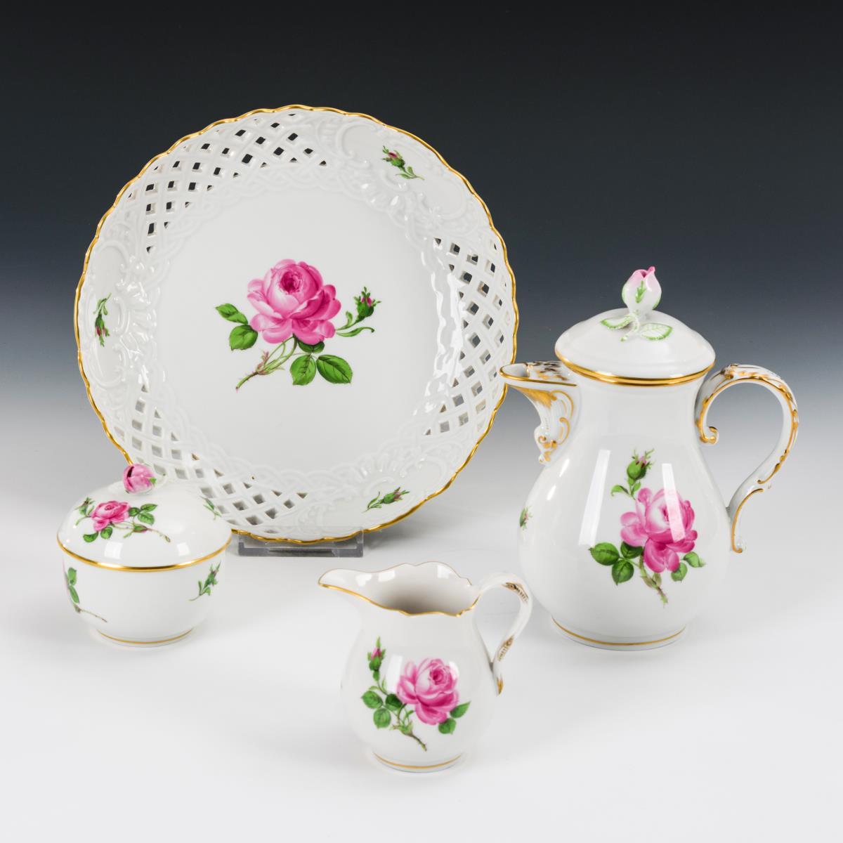 Kernstück und Durchbruchschale "Rote Rose". Meissen.