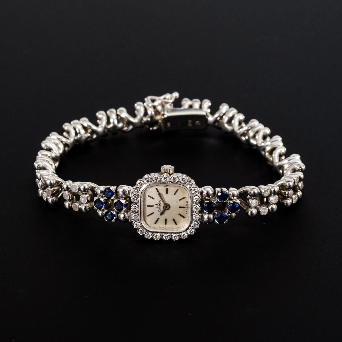 Damenarmbanduhr OMEGA mit Brillanten und Saphiren.
