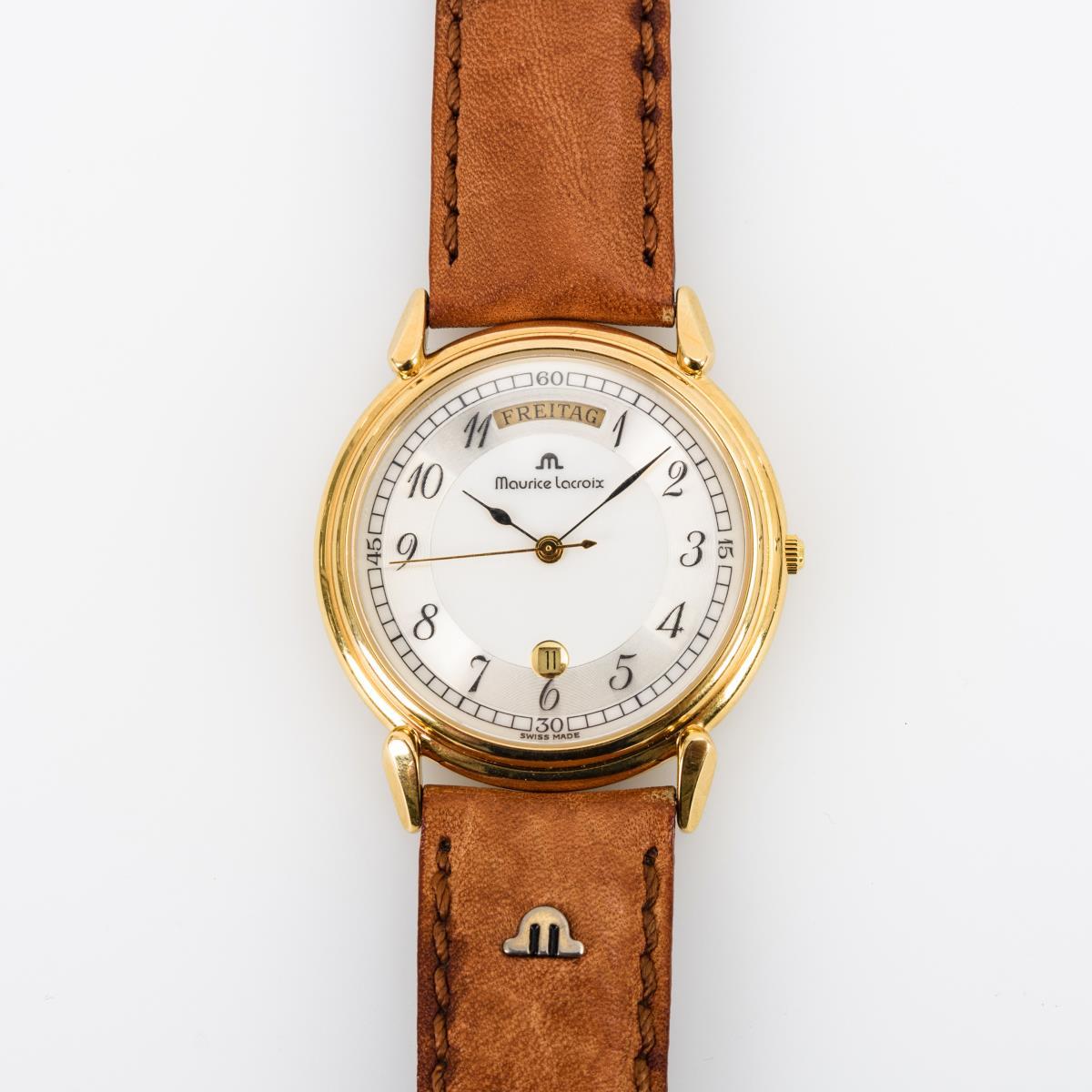 Vergoldete Herrenarmbanduhr. Maurice Lacroix.