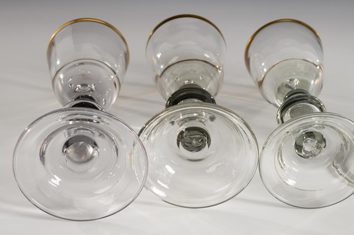 6 Kelchgläser mit Goldrand. Lauenstein.