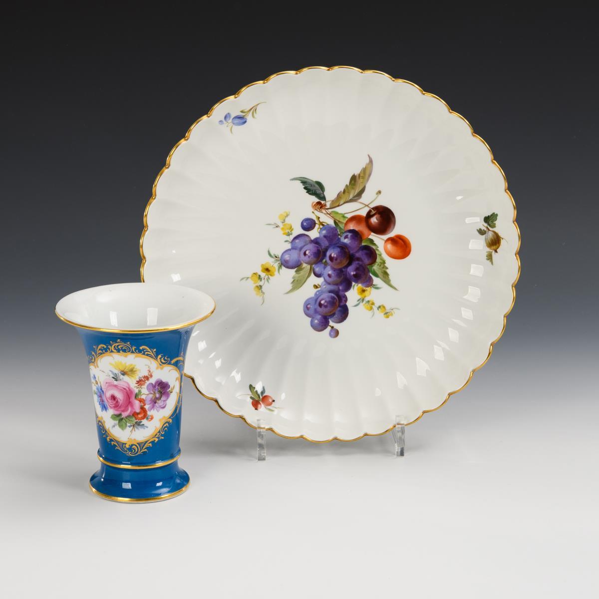 Fächerteller und Kratervase. Meissen.