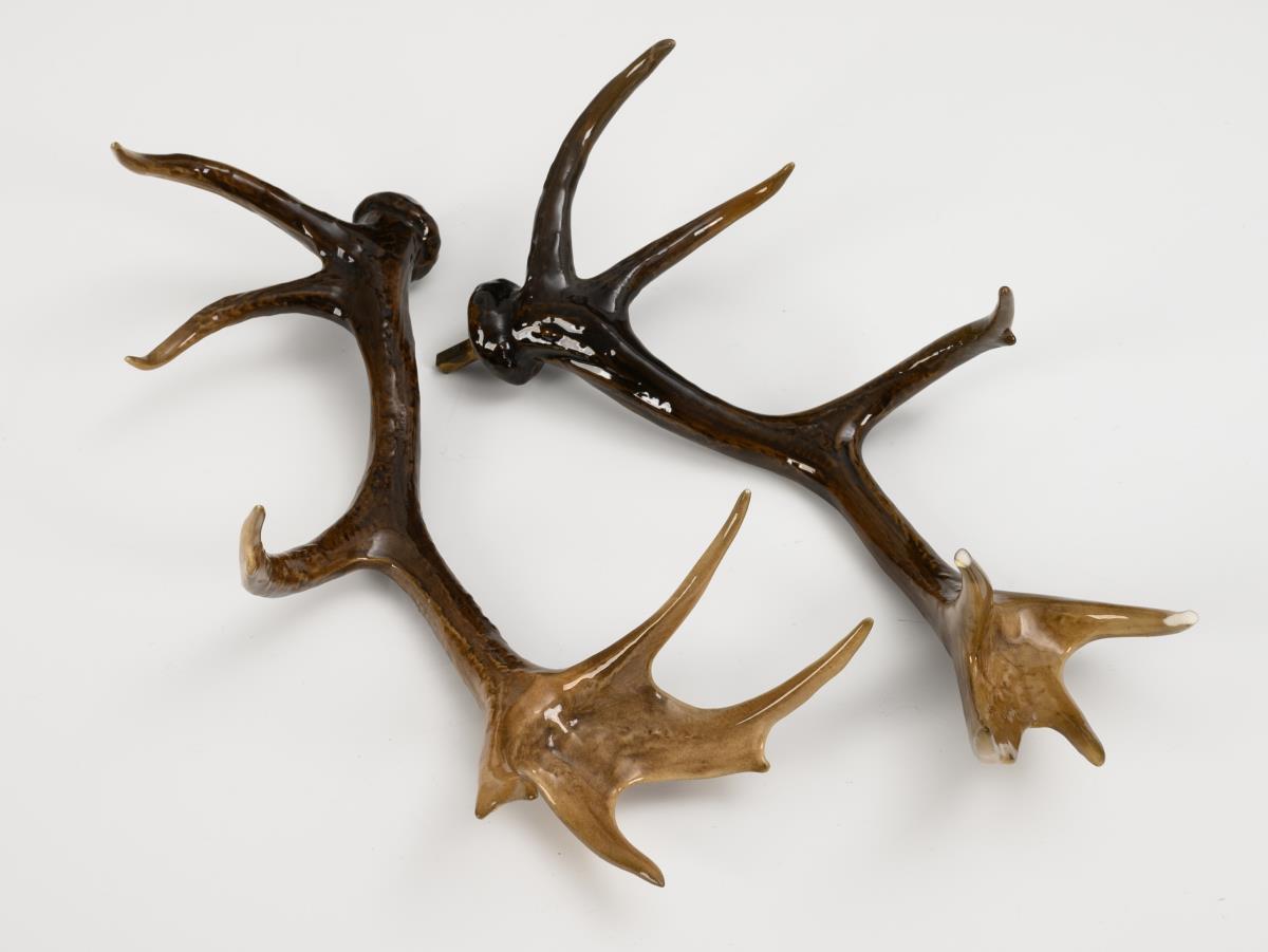 Beide Geweihstangen restauriert, 1 Geweihspitze lose anbei.