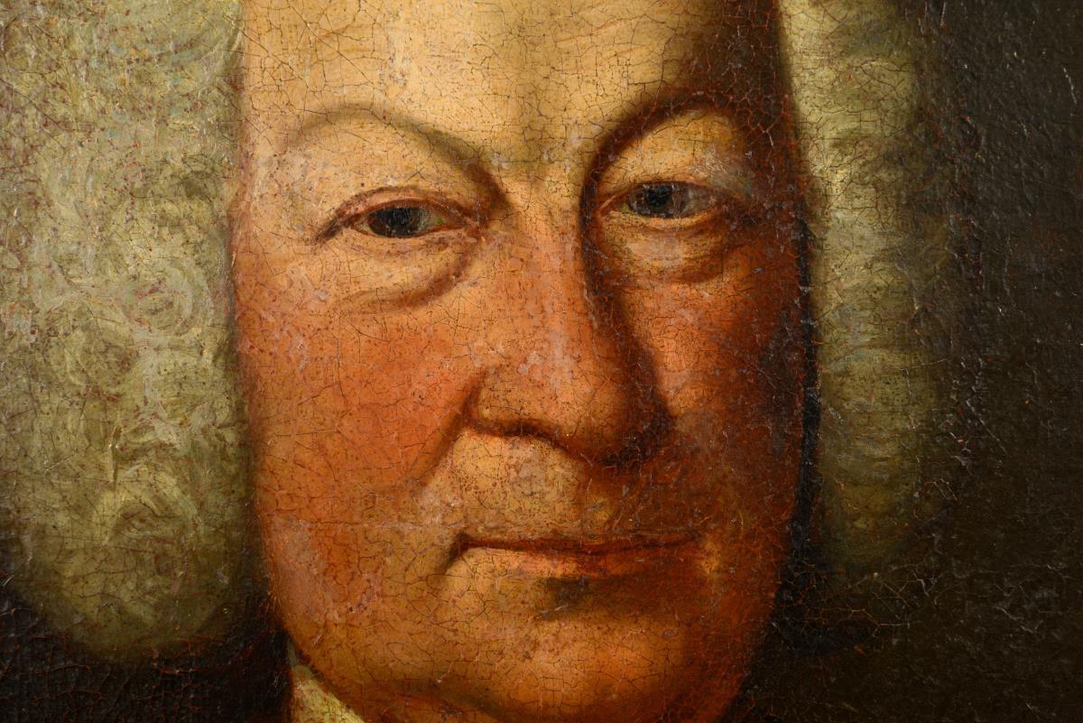 Porträt eines Mannes in prunkvoller Kleidung mit Allongeperücke. Leinwand doubliert, Altersspuren.