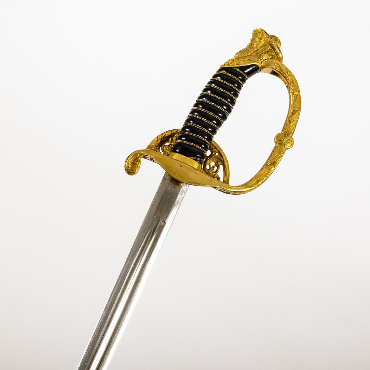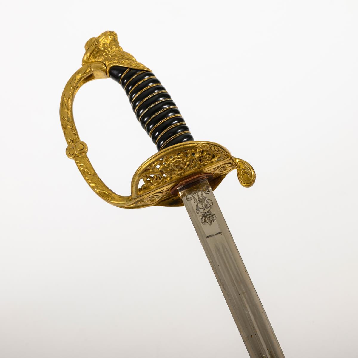 Sie befinden sich hier: Startseite Kategorien Varia Infanterie Offiziersdegen 1867, mit Klappbügel und schwarzer Scheide