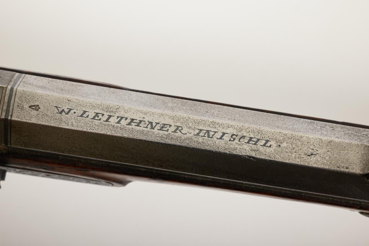 Lauf gemarkt: "W. Leithner in Ischl" (Wolfgang Leithner, KuK Hofbüchsenmacher, 1850 - 1880).