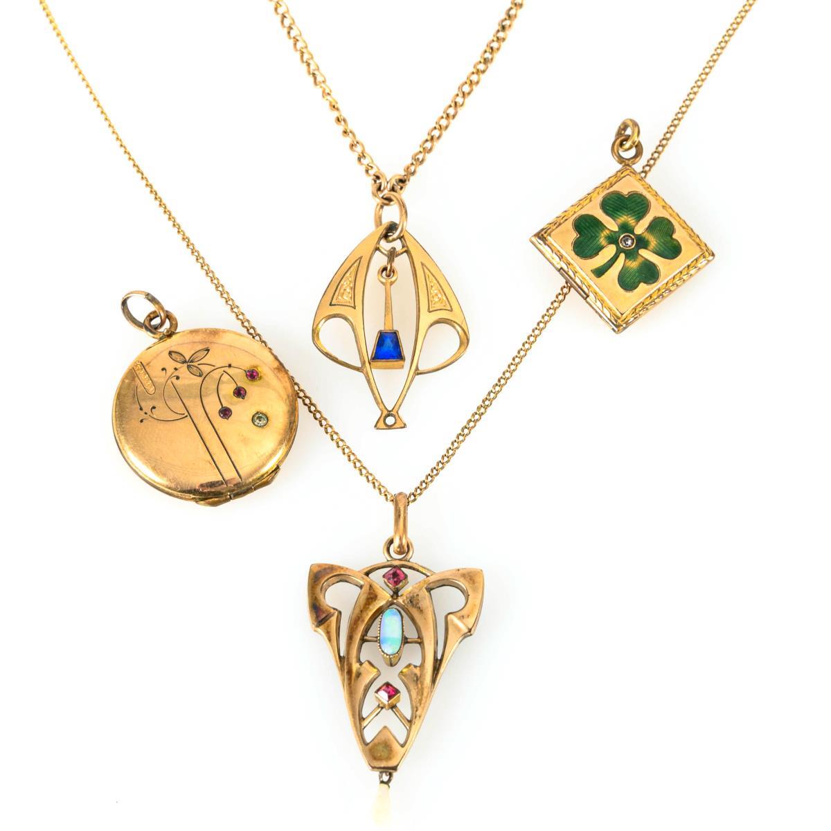 Jugendstil-Schmuckkonvolut um 1900.