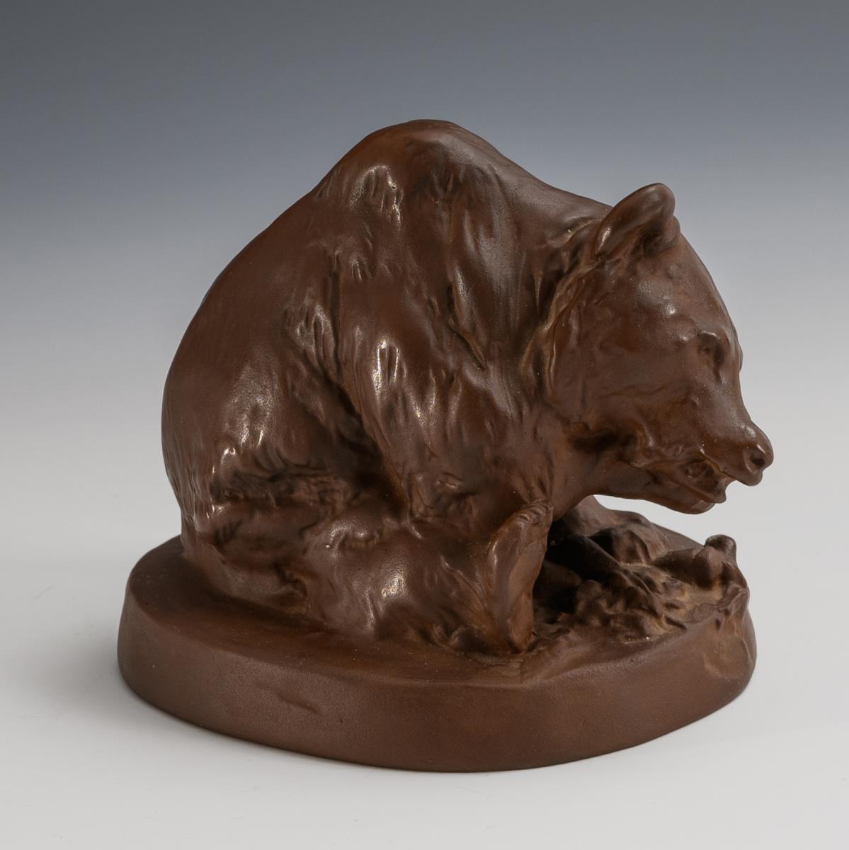 Tiermodelle in weißem Porzellan ohne jegliche Bemalung und in Böttgersteinzeug ausgeführt. Dazu gehörte auch die Figur des kleinen, fressenden Bären, dessen Ausführung in Porzellan eine differenziertere Gestaltung zeigt als die Version in Böttgersteinzeug. Dadurch wird offensichtlich, dass ursprünglich die Modelle von Gaul nicht für eine Ausführung in keramischen Materialien