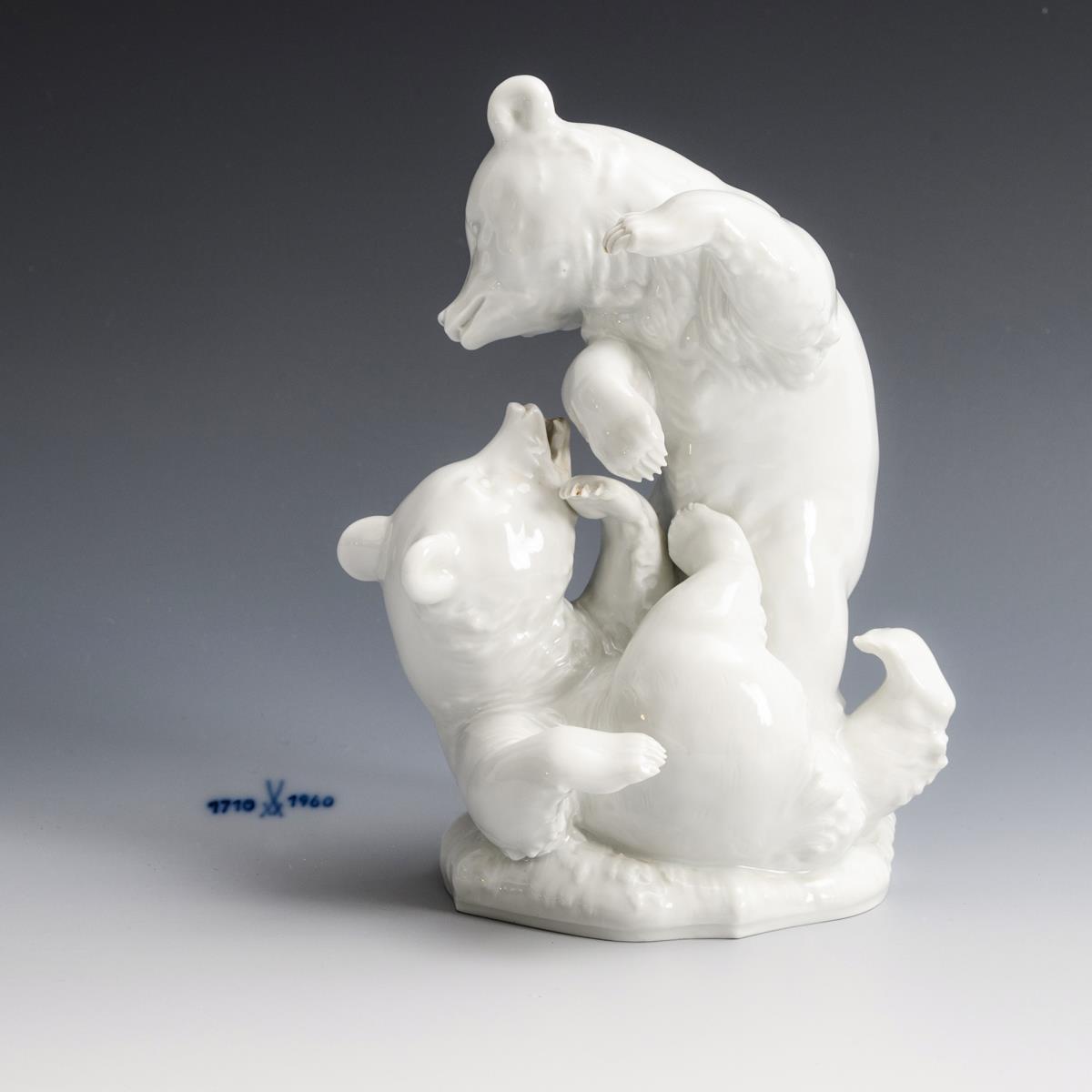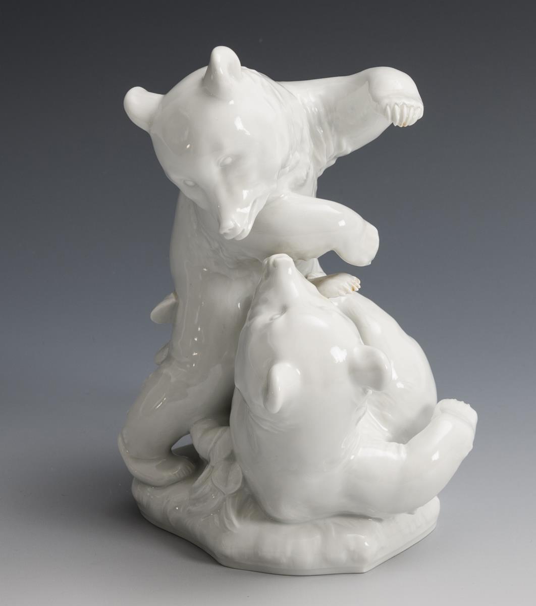 "Alexander Struck (1902 – 1990) besuchte kaum 15-jährig die Meissener Zeichenschule und studierte an S. 13ff. der Dresdener Akademie. Seit den 1930er Jahren wurden Entwürfe von ihm in der Manufaktur umgesetzt. Er schuf zwar vor allem Märchen- und Sagenfiguren, widmete sich aber auch der Tierplastik, wie diese spielenden Bären zeigen." (Petra Werner, in: Katalog: Auf der Pirsch - Jagdbare Tiere in Porzellan, Porzellanikon (Bd. 117), Hohenberg a.d. Eger 2015, S. 48/Kat.-Nr. 44).