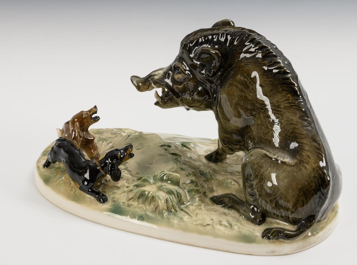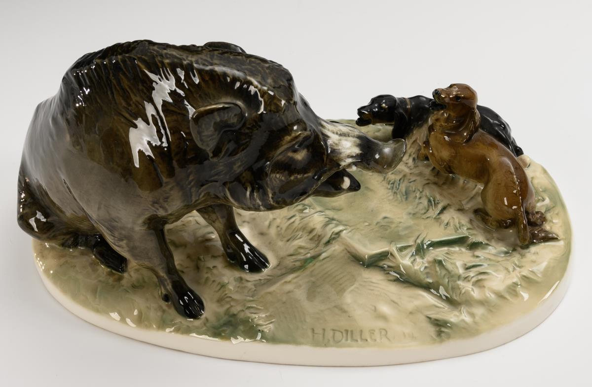 Wildschwein mit Hunden. Hutschenreuther.