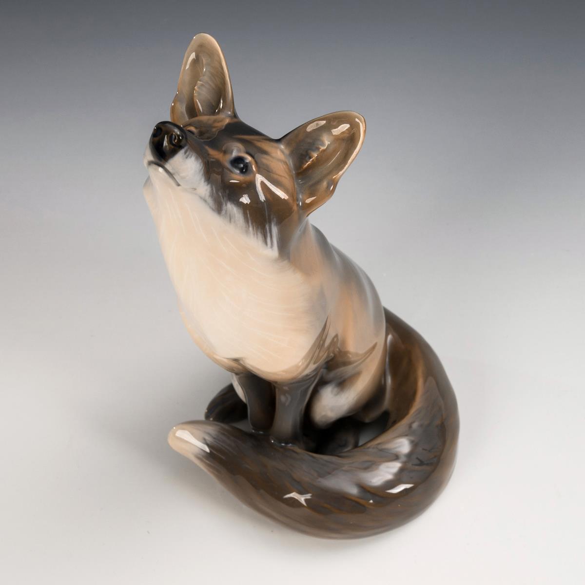 "Der sitzende Rotfuchs von Erik Nielsen (1857 – 1947) gehört zu jenen Tierdarstellungen, mit denen die Königliche Porzellanmanufaktur seit der Pariser Weltausstellung 1900 Weltruf erlangte. Nielsen begann als Modelleur bei Bing & Grøndahl, bevor er 1887 zur Königlichen Porzellanmanufaktur wechselte, für die er bis 1926 tätig war. Hauptsächlich schuf er Tierplastik. Das Fuchsmodell wurde später auch in verkleinerter Form sowie mit anderer Bemalung als Polarfuchs in das Figurenprogramm aufgenommen." (Petra Werner, in: Katalog: Auf der Pirsch - Jagdbare Tiere in Porzellan, Porzellanikon (Bd. 117), Hohenberg a.d. Eger 2015, S. 76/Kat.-Nr. 83).