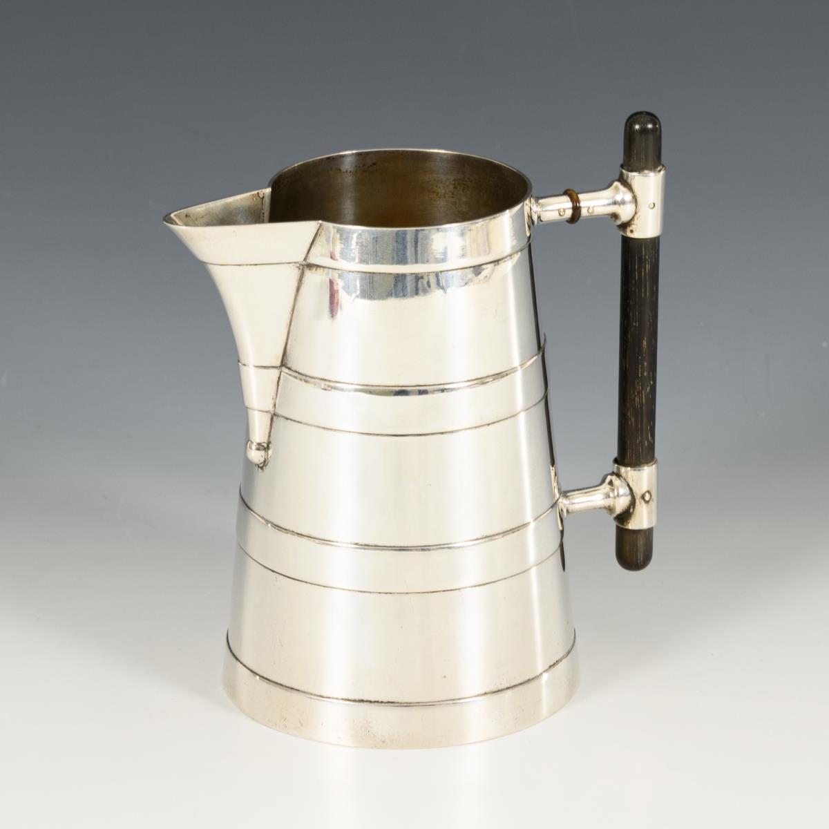 Konisches Kännchen mit vertikalem Ebenholzhenkel. Henkel minimal gelockert.