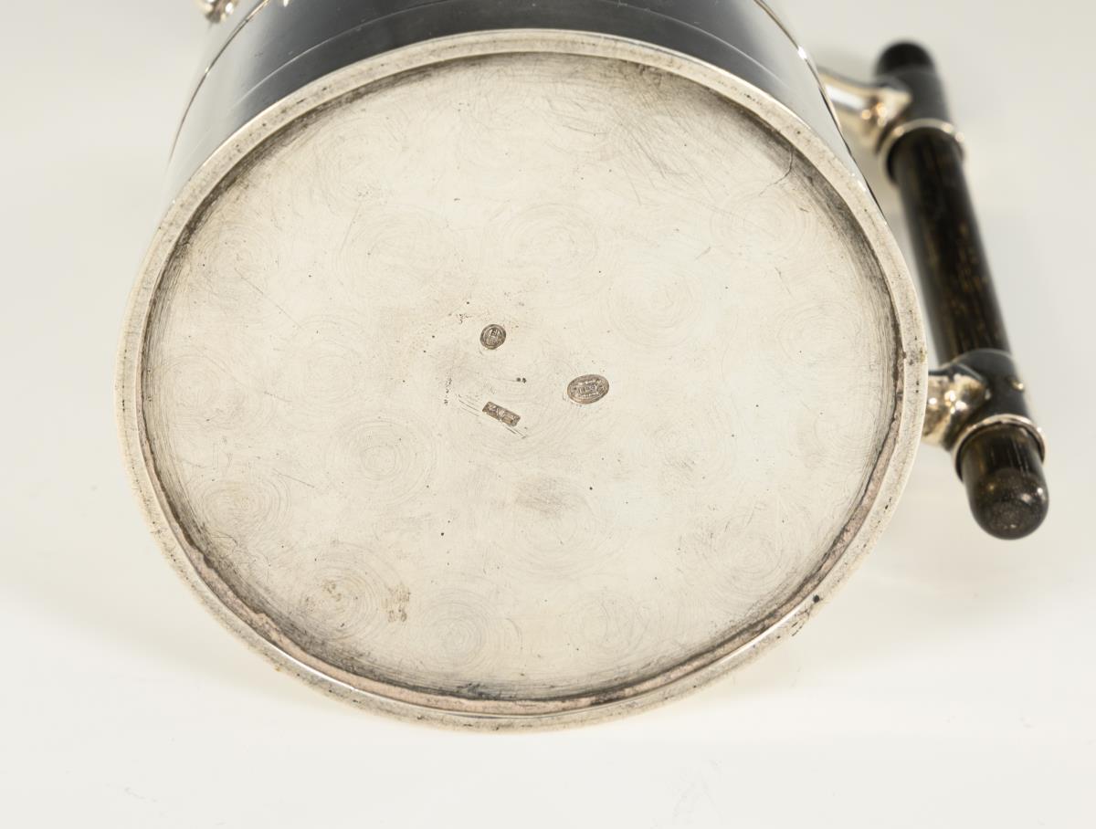 Konisches Kännchen mit vertikalem Ebenholzhenkel. Henkel minimal gelockert.
