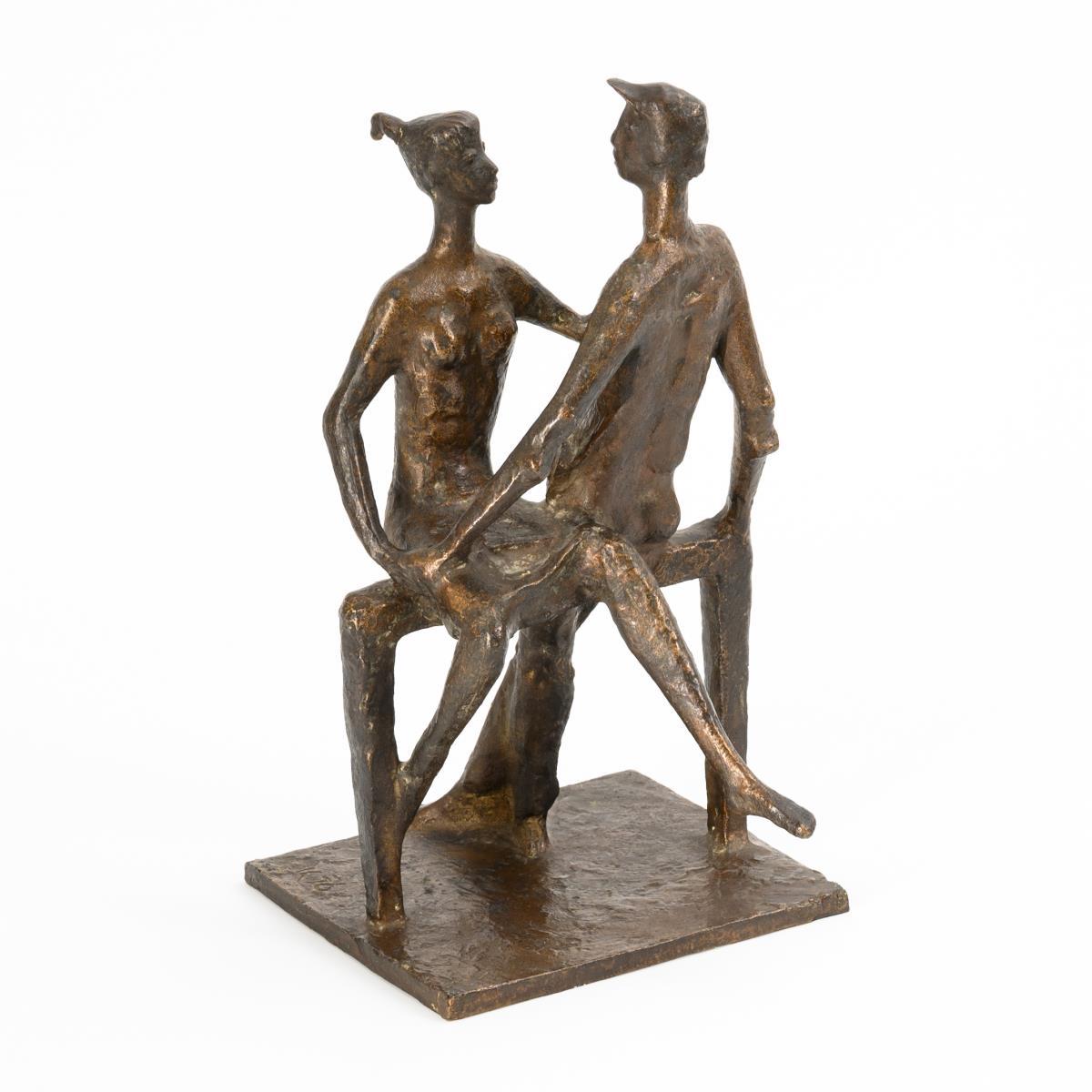 Bronze patiniert. Mit Monogramm bezeichnet/datiert (19)76, unter der Plinthe angeklebte Messingplakette "Rundfunk der DDR, Hörspielpreis 1983". H 32 cm. 7,5 kg.