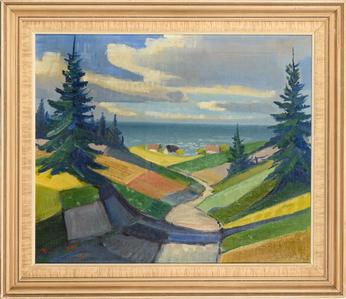 Undeutlich signiert: Sonnige Küstenlandschaft