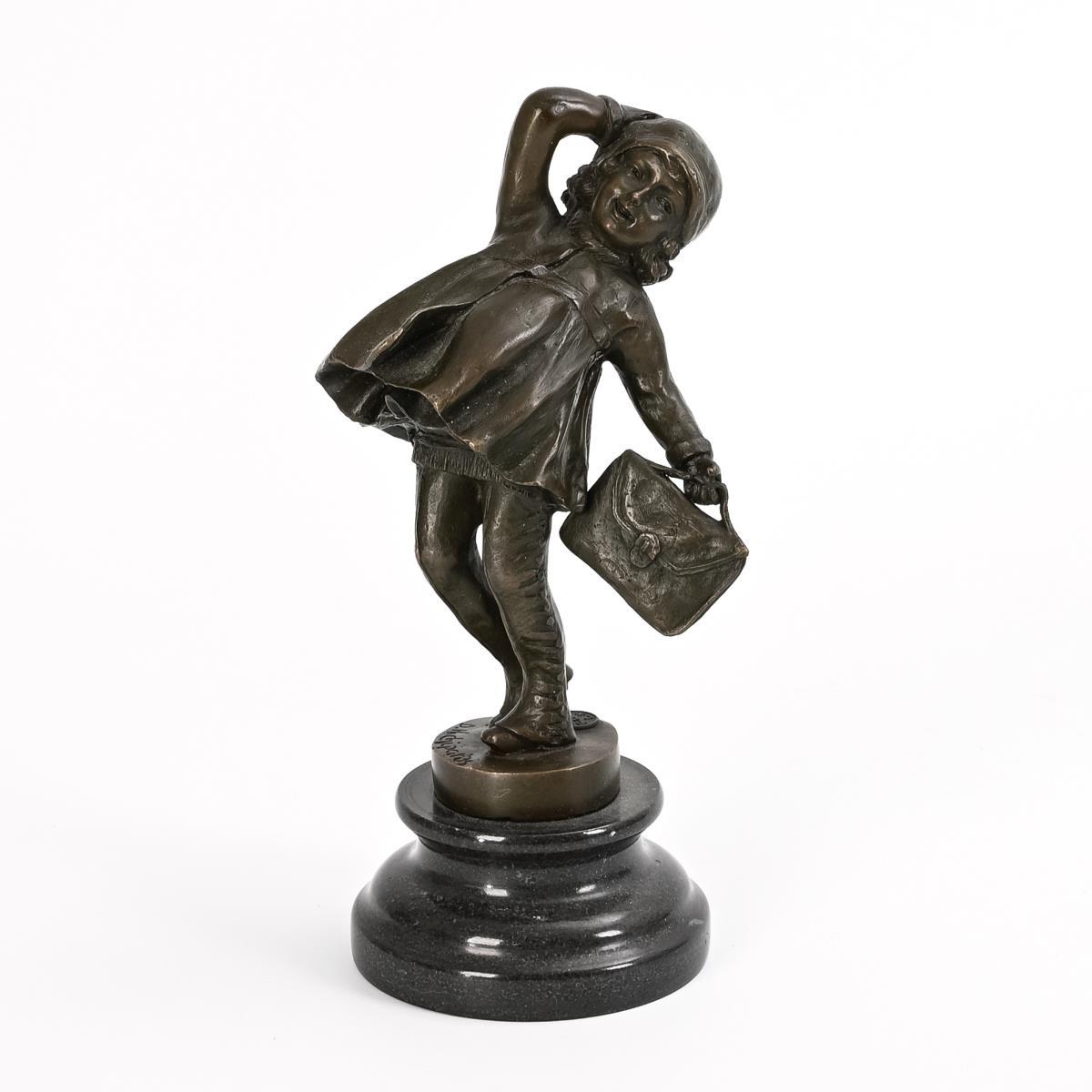 Bronze patiniert, schwarzer Marmor-Sockel. Bezeichnet, Gießermarke "JL LN Paris". H 19,5 / 24,5 cm.