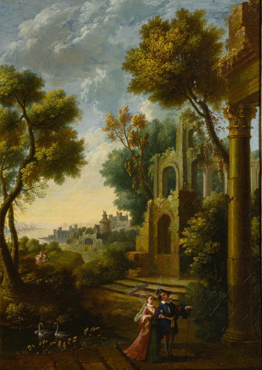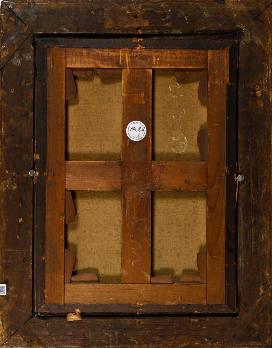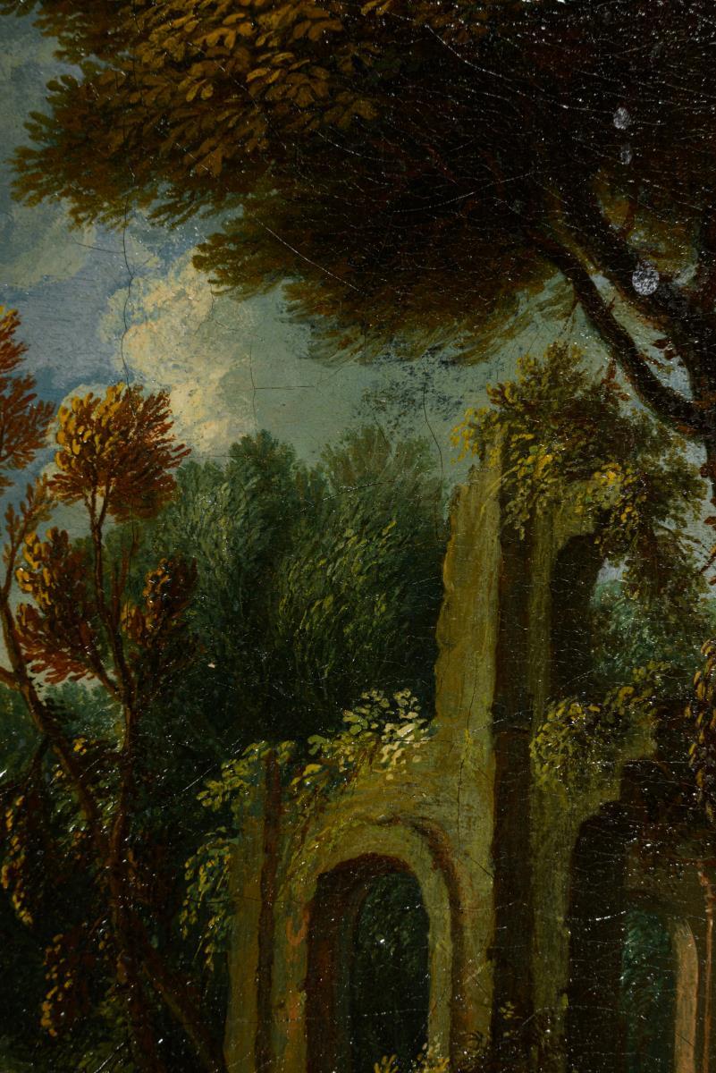 Öl/Leinwand. Rechts unten schwach an der Säule signiert.