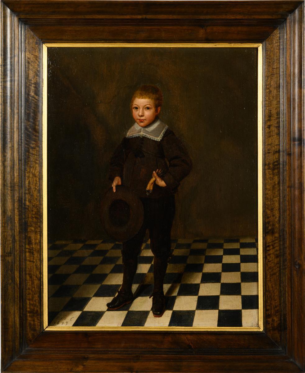 Öl/Holz. Links unten Altersbezeichnung des Dargestellten "EA.E 6", also im Alter von 6 Jahren. 1643.