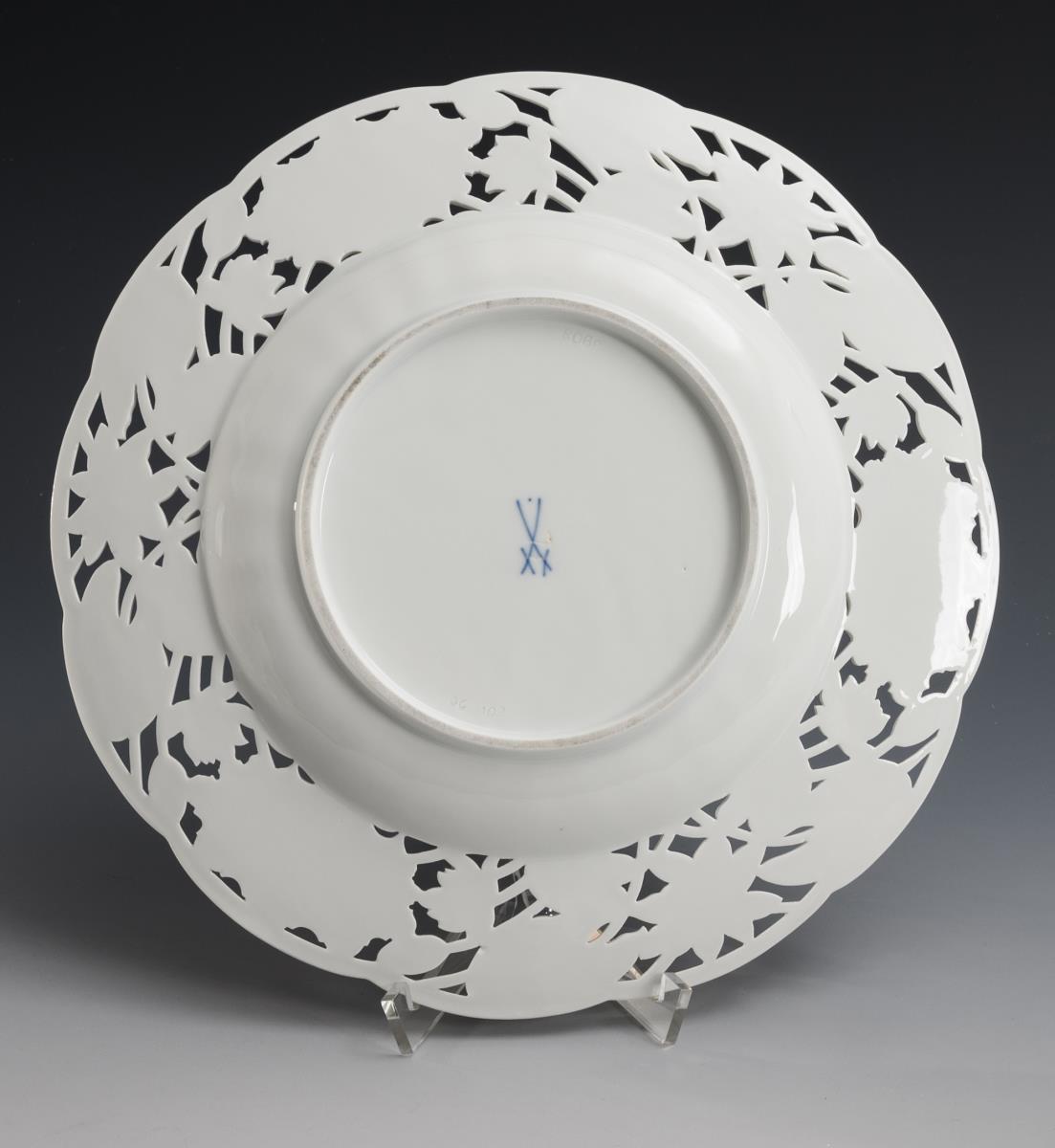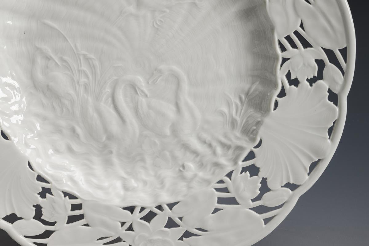 Seltener Durchbruchteller mit Schwanenservicerelief. Meissen.