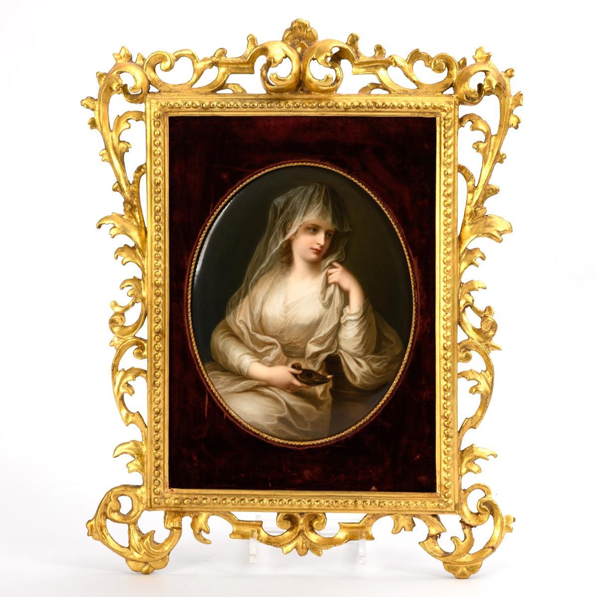 Porzellangemälde: Porträt einer Dame als Vestalin. KPM Berlin.
