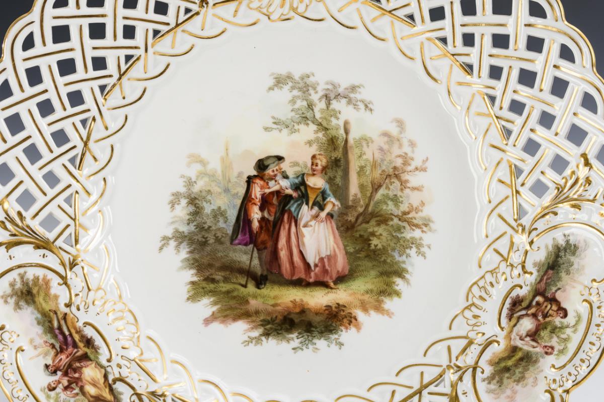 Durchbruchteller mit Watteau-Malerei. Meissen.