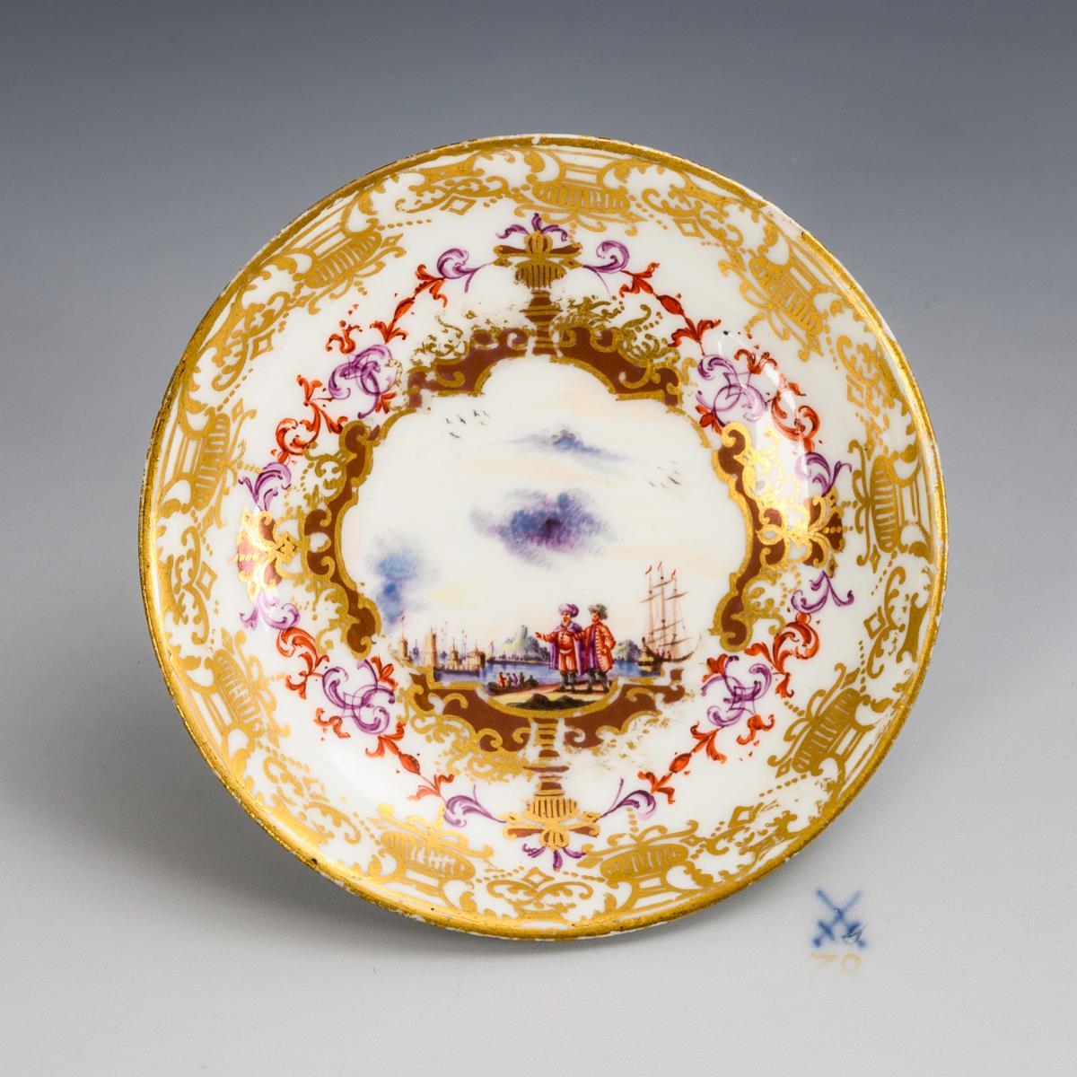 Barocke Untertasse mit Kauffahrteimalerei. Meissen.