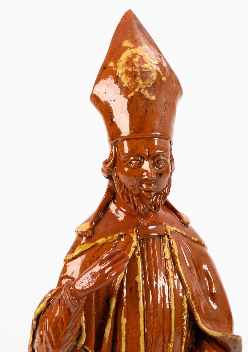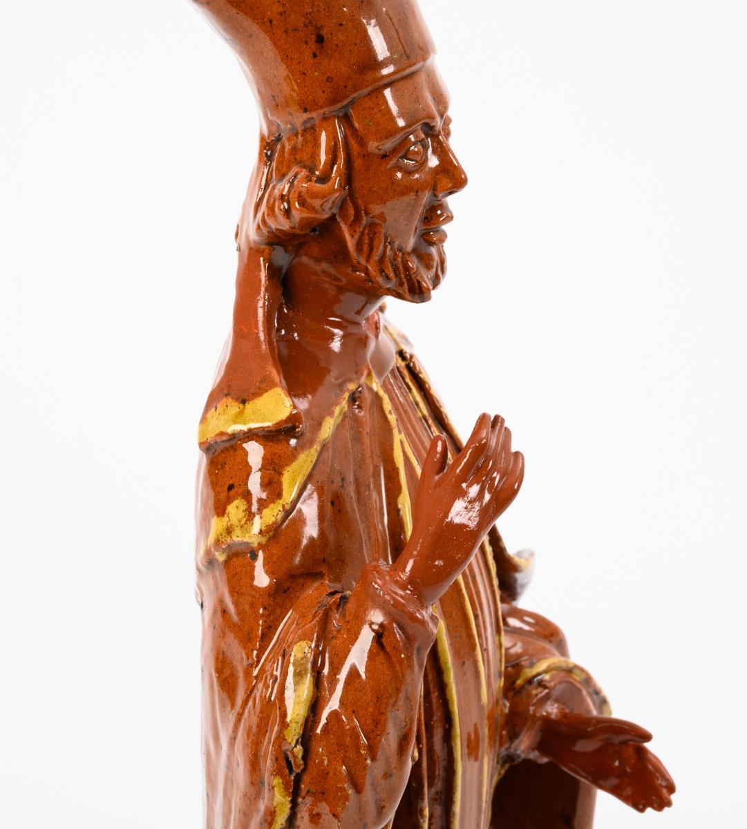 Keramikfigur: Stehender Bischof.