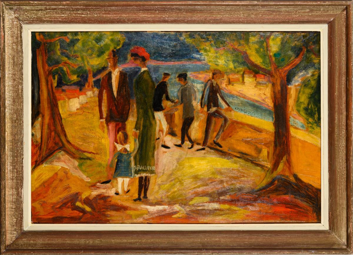Rheinischer Expressionist: Flusslandschaft mit Staffage