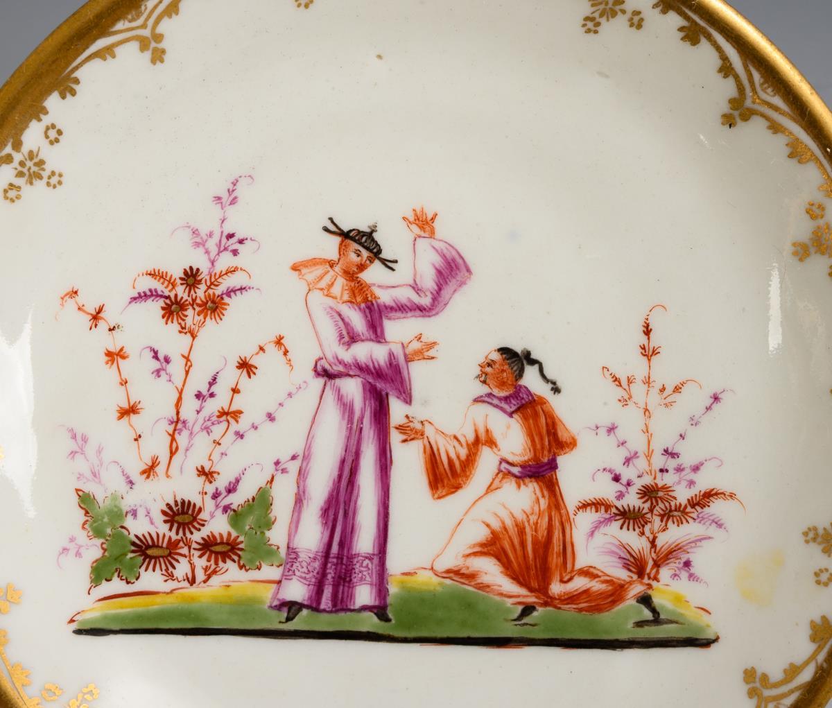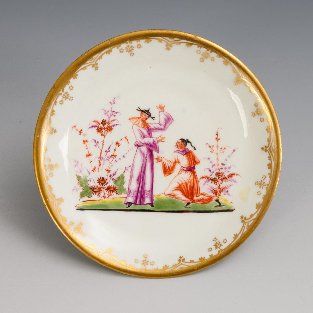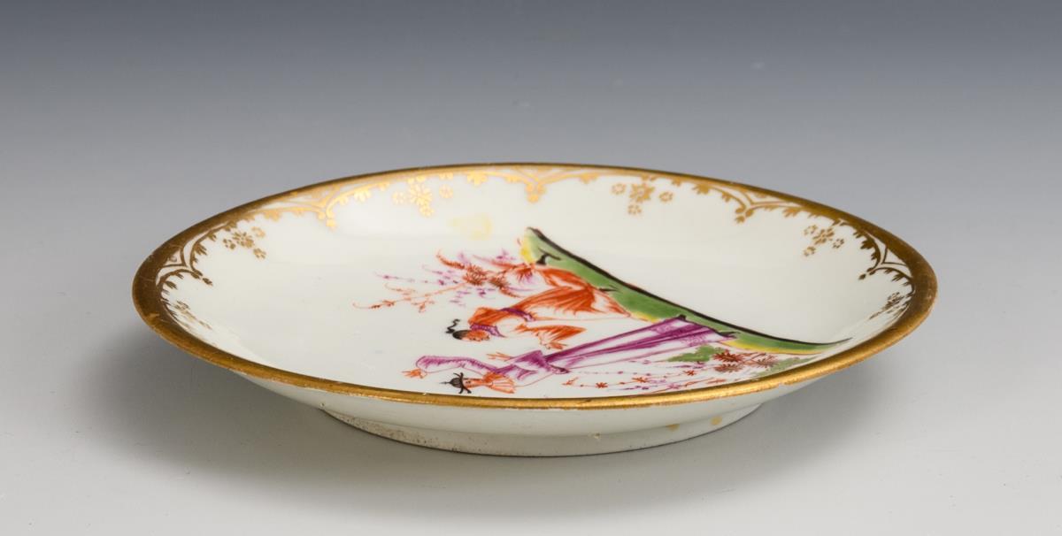 Polychrom bemalt, goldstaffiert. Ø 12,5 cm.