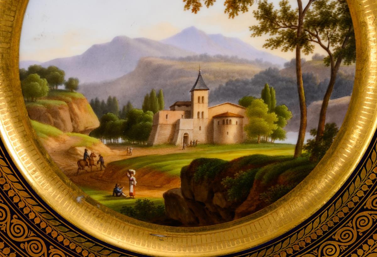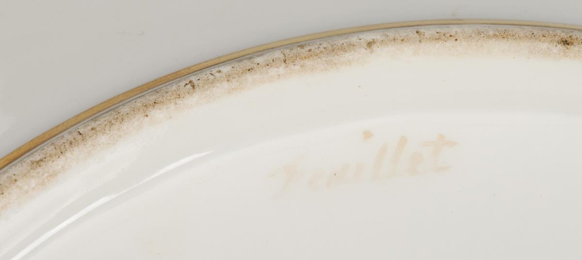 Teller mit Landschaftsmalerei. Feuillet/Paris.
