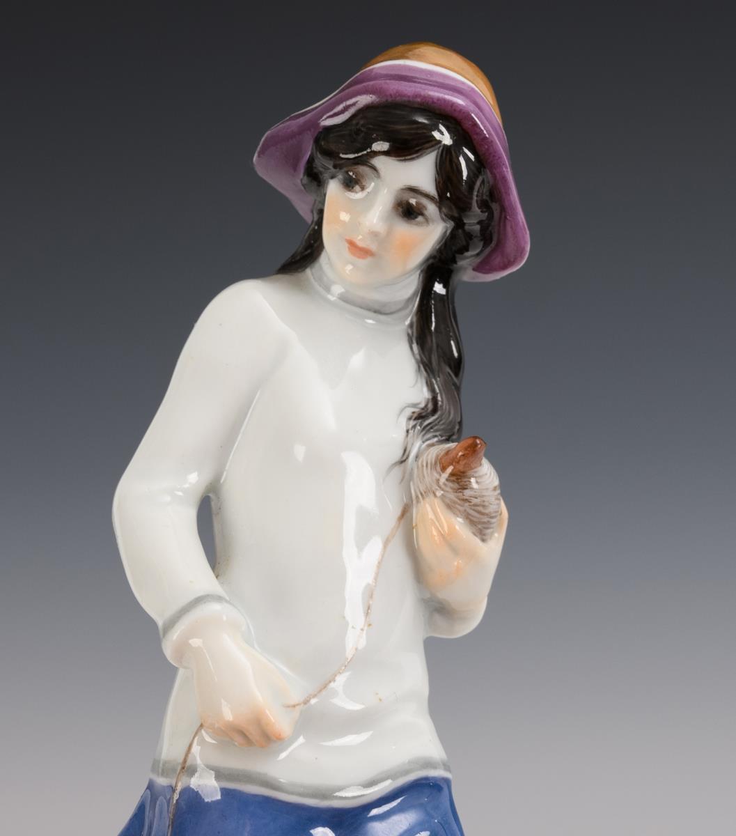 Jugendstil-Mädchen mit Bindfadenrolle. Meissen.