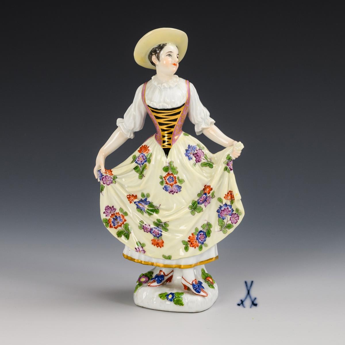 Den Rock fassende Rokokotänzerin. Hut und Kopf restauriert.