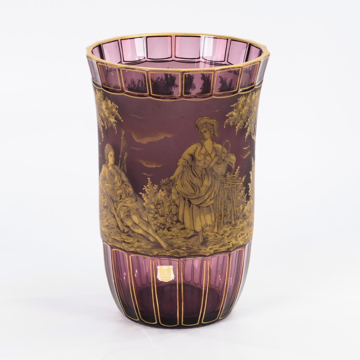 Violettes Glas, Goldmalerei. H 30 cm.