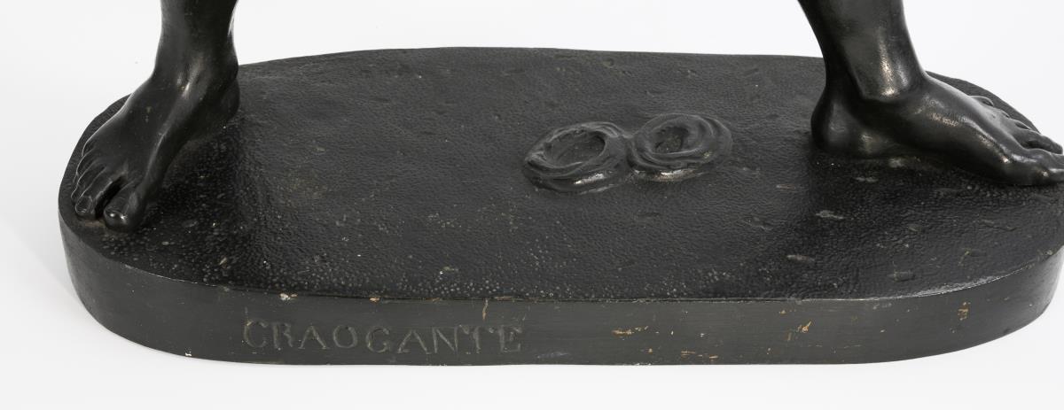 Bronze schwarz patiniert. Auf der Sockelfront "Craogante" (statt Creugante) bezeichnet. 71,5 x 41 x 18 cm. 14,5 kg.