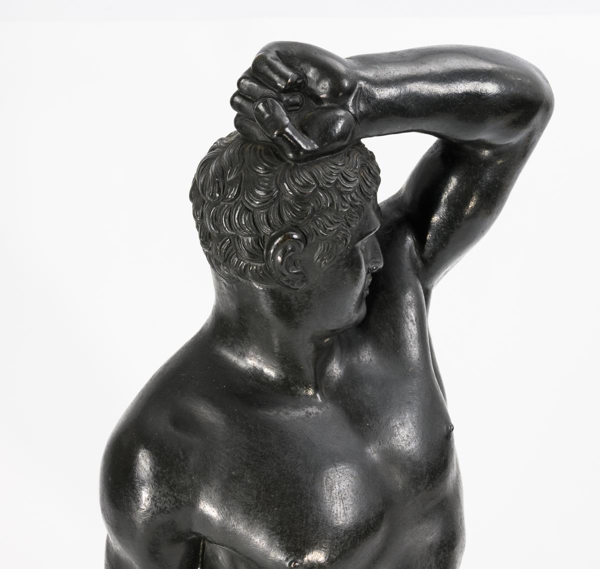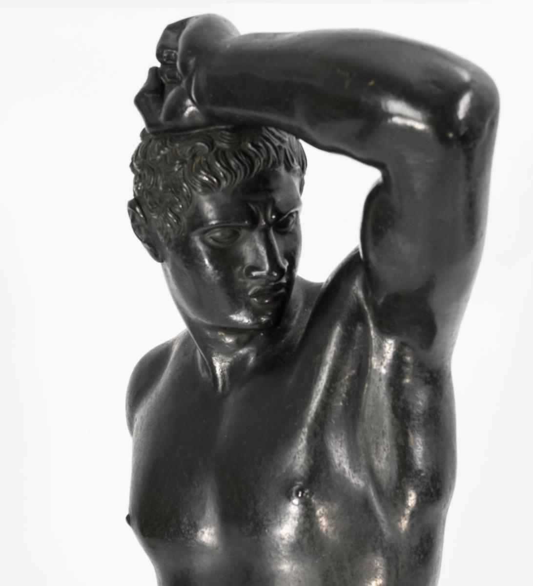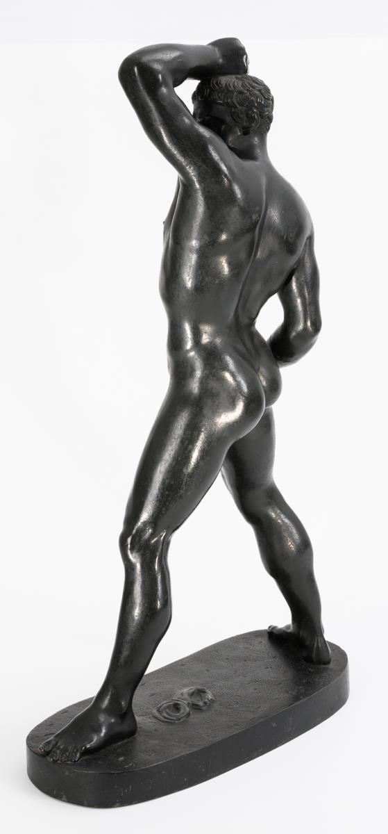 Nach der um 1800 von Antonio Canova geschaffenen Marmorfigur des antiken Faustkämpfers, die sich heute in den Vatikanischen Museen befindet. Sichtbare Armnaht, auf dem Rücken ausgekittetes minimales Bohrloch, einige Alters-/Gebrauchsspuren.