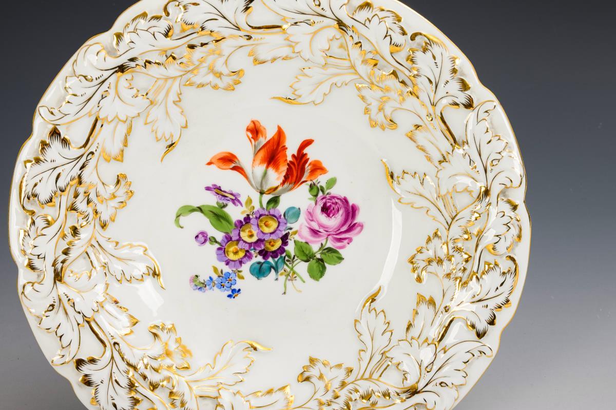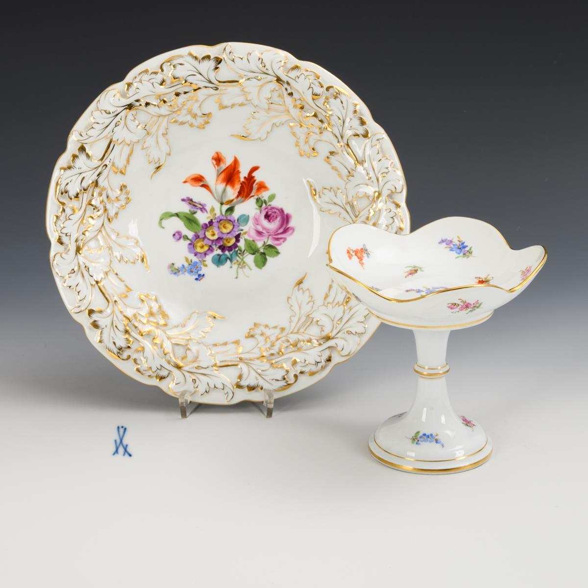Prunkschale und Tafelaufsatz mit Blumenmalerei. Meissen.