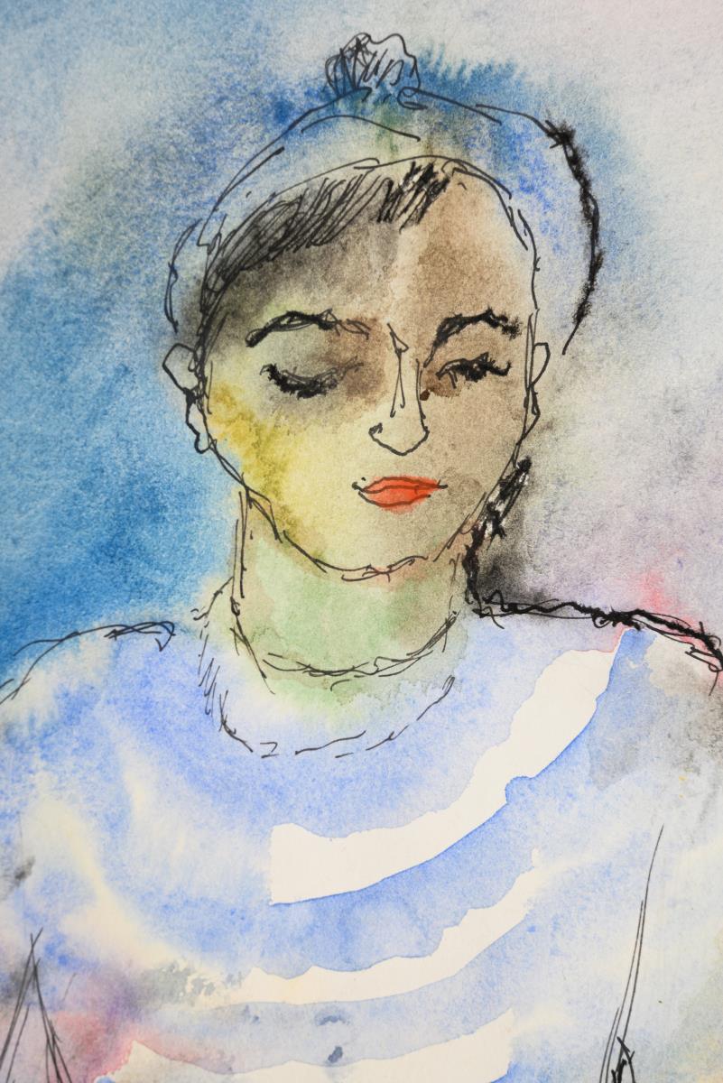Aquarell und Farbstift. Links unten monogrammiert mit Zusatz "Caen". (19)46.