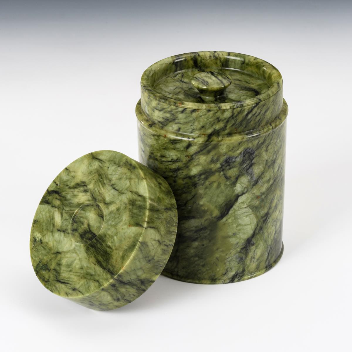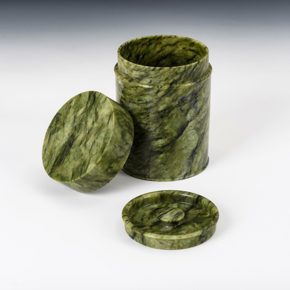 Deckelgefäß aus grüner Jade-Teedose.