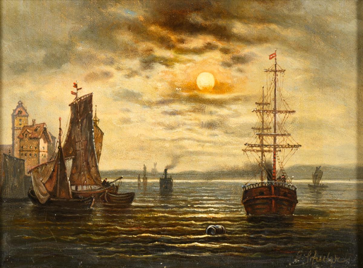 Öl/Leinwand. Rechts unten undeutlich signiert, verso betitelt, mit Wachssiegel.