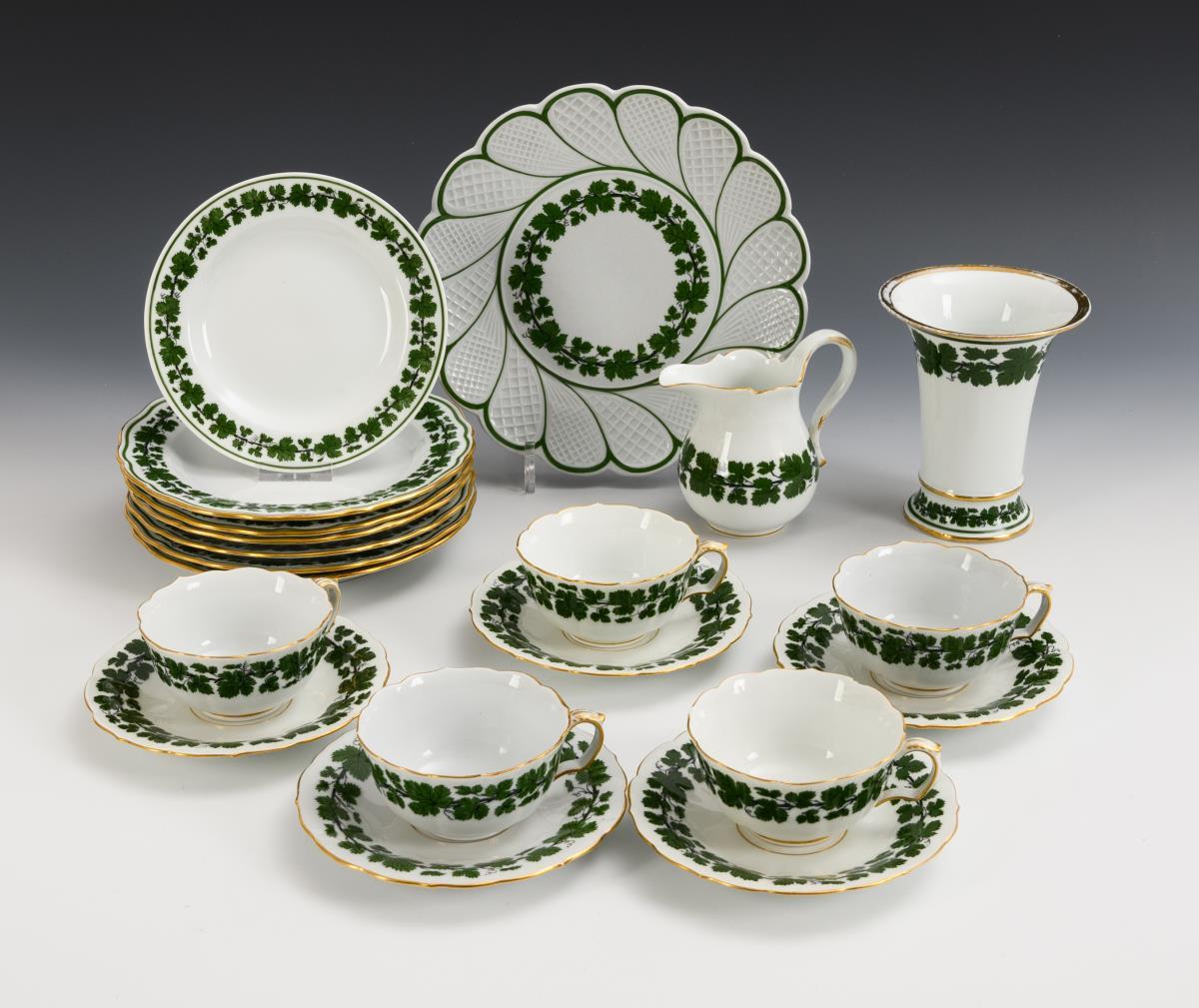 20 Teile eines Teeservice mit Weinlaubdekor. Meissen.