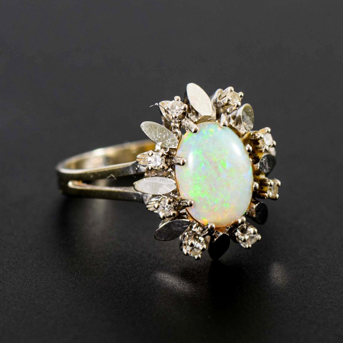 Ring mit Opal und Diamanten.