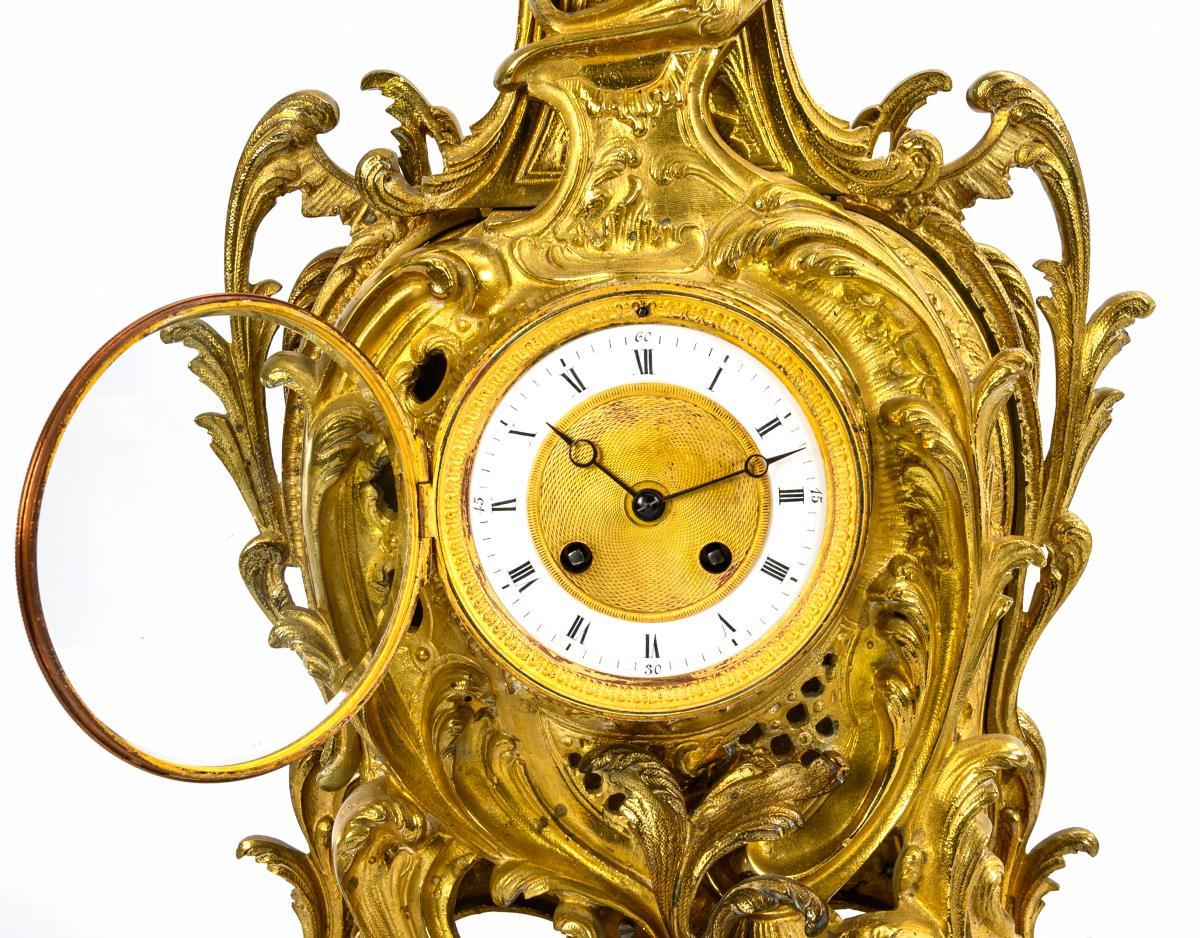 3-teilige Bronze-Uhrengarnitur im Rokoko-Stil.
