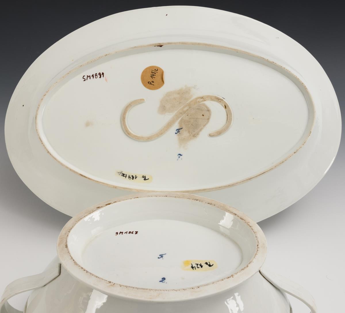 Empire-Terrine und -Platte mit Blaumalerei. Fürstenberg.
