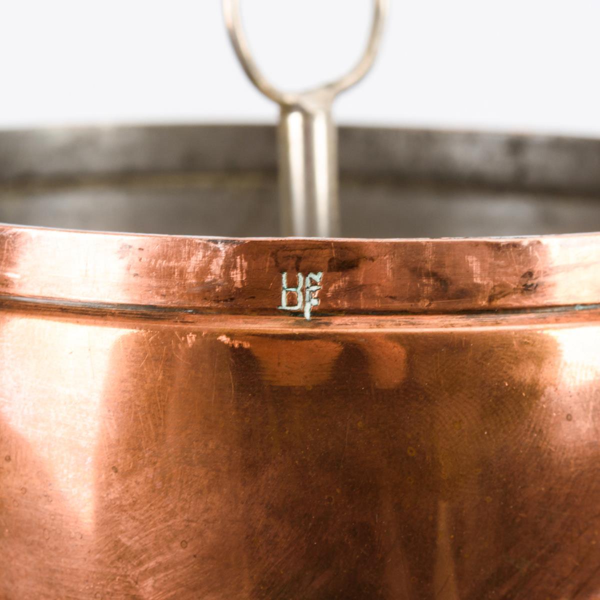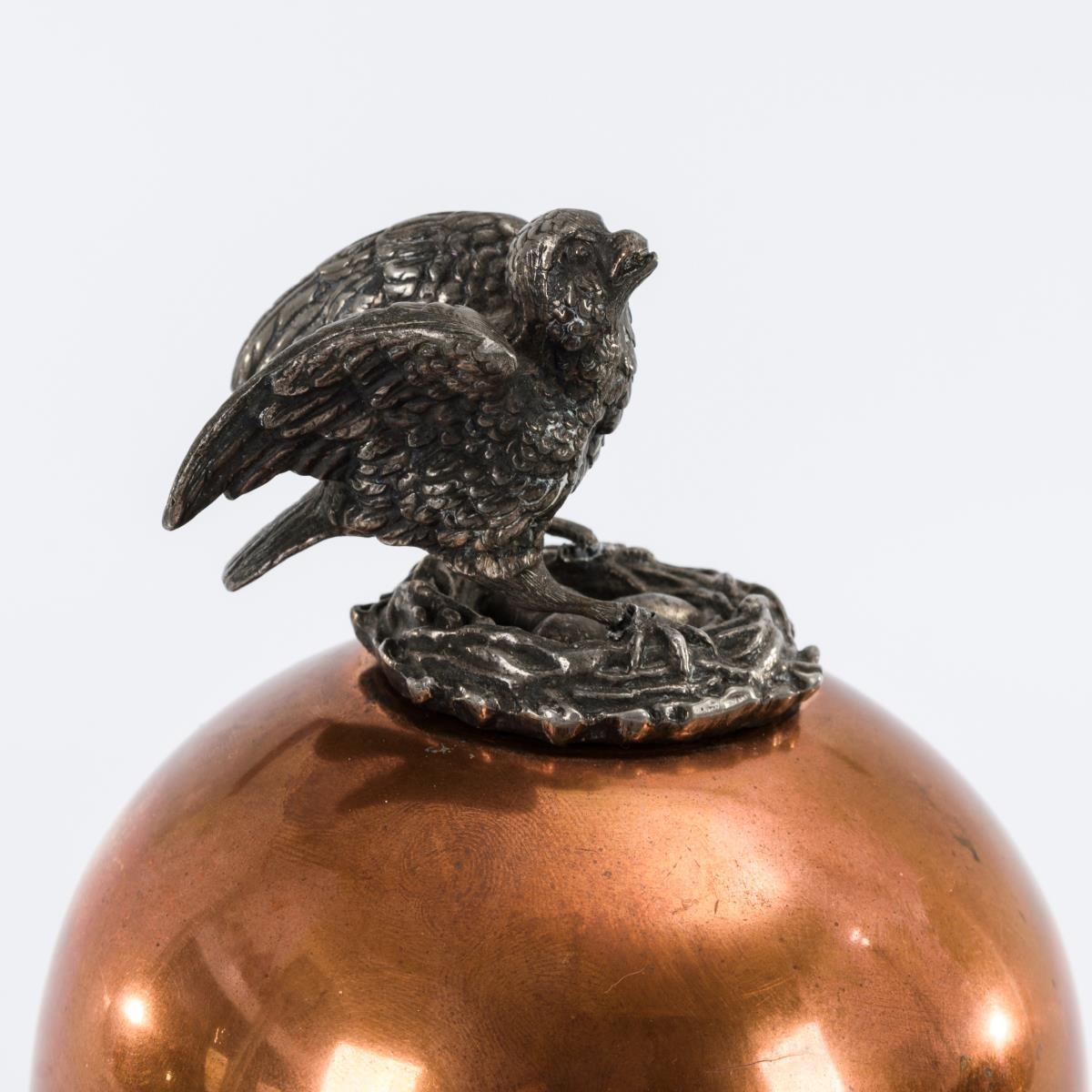 Kupferblech innen verzinnt, Bronze-Füße, Bekrönung aus Blei/Zinnlegierung. H 24,5 cm.