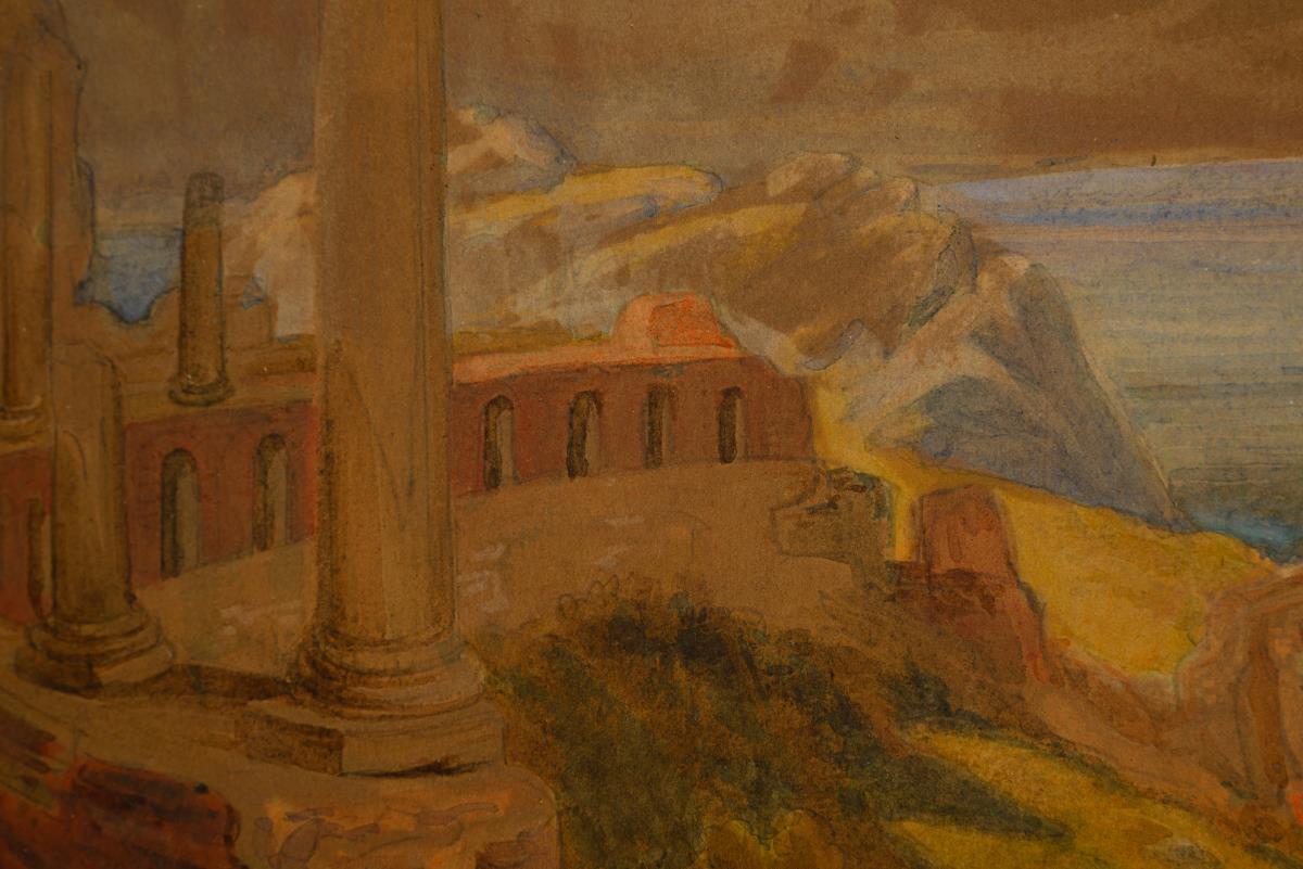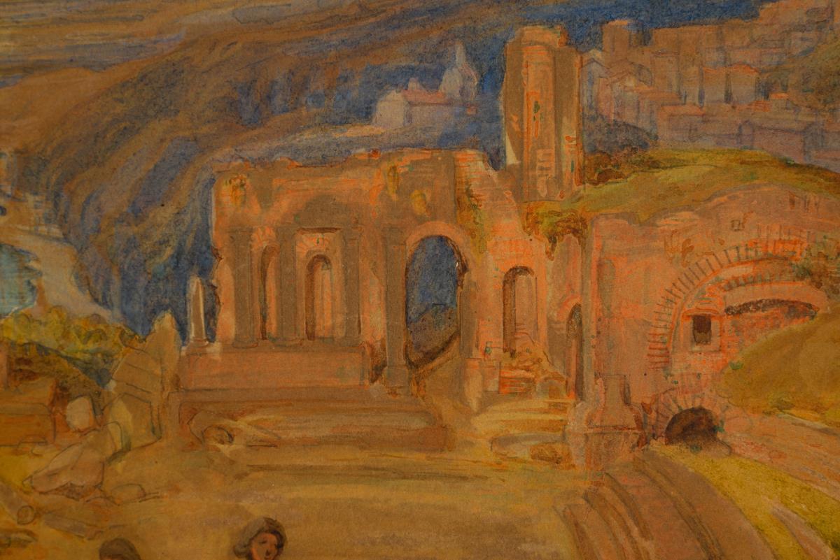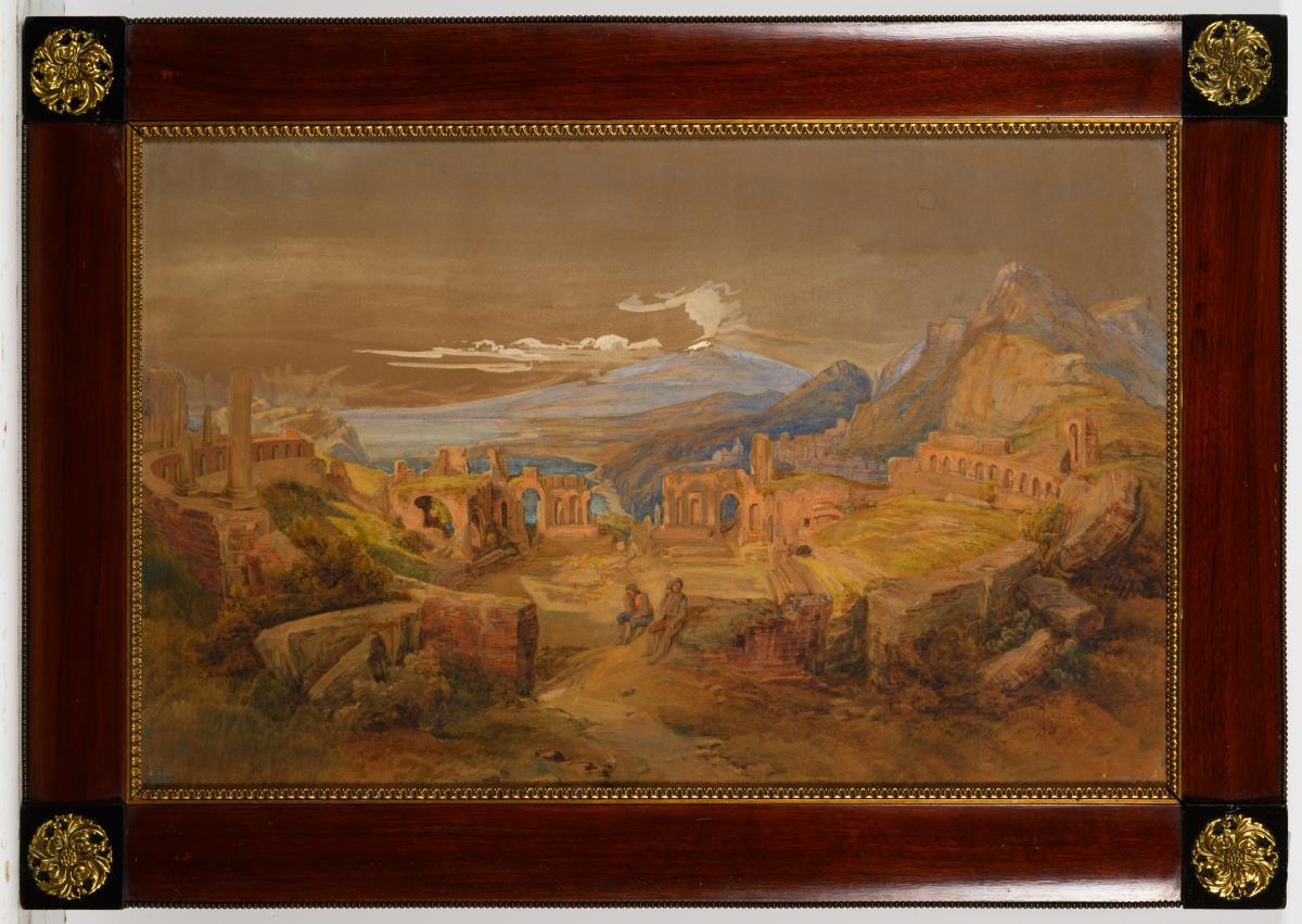 42 x 65,5 cm. Gerahmt & hinter Glas : 56 x 80 cm (Biedermeier-Mahagonirahmen mit Goldleiste und Messingapplikationen).