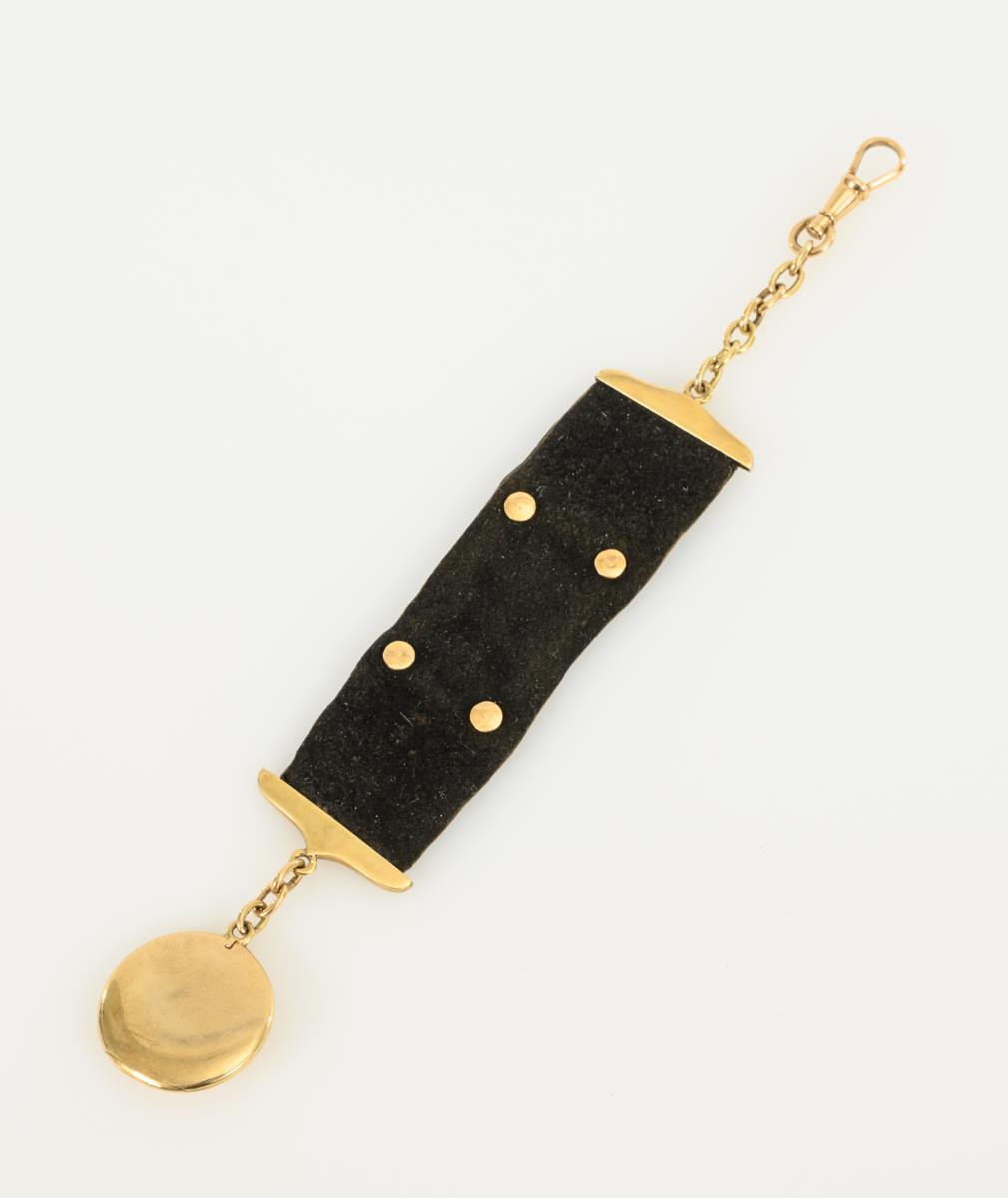 Goldene Châtelaine mit Amulett und Diamantrosen.