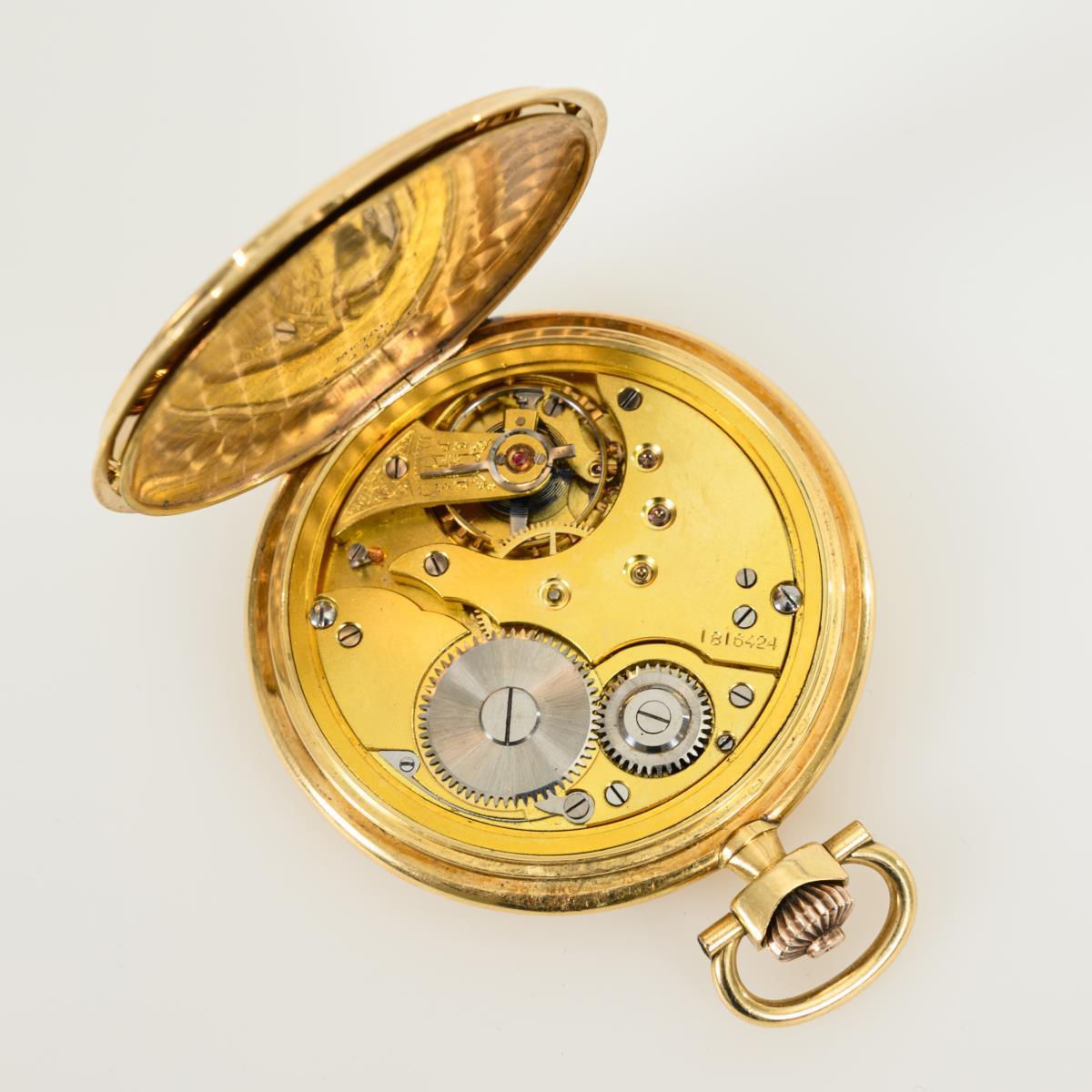 585 gepunzt, Schweizer Beschauzeichen, Feingehaltsstempel, Firmenmarke Eterna, Staubdeckel aus Metall. Ø 5,2 cm. 84 g.