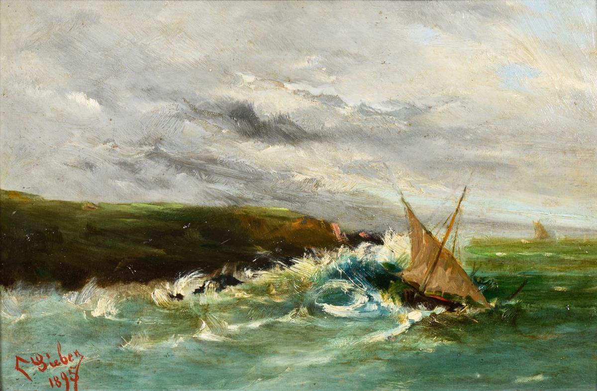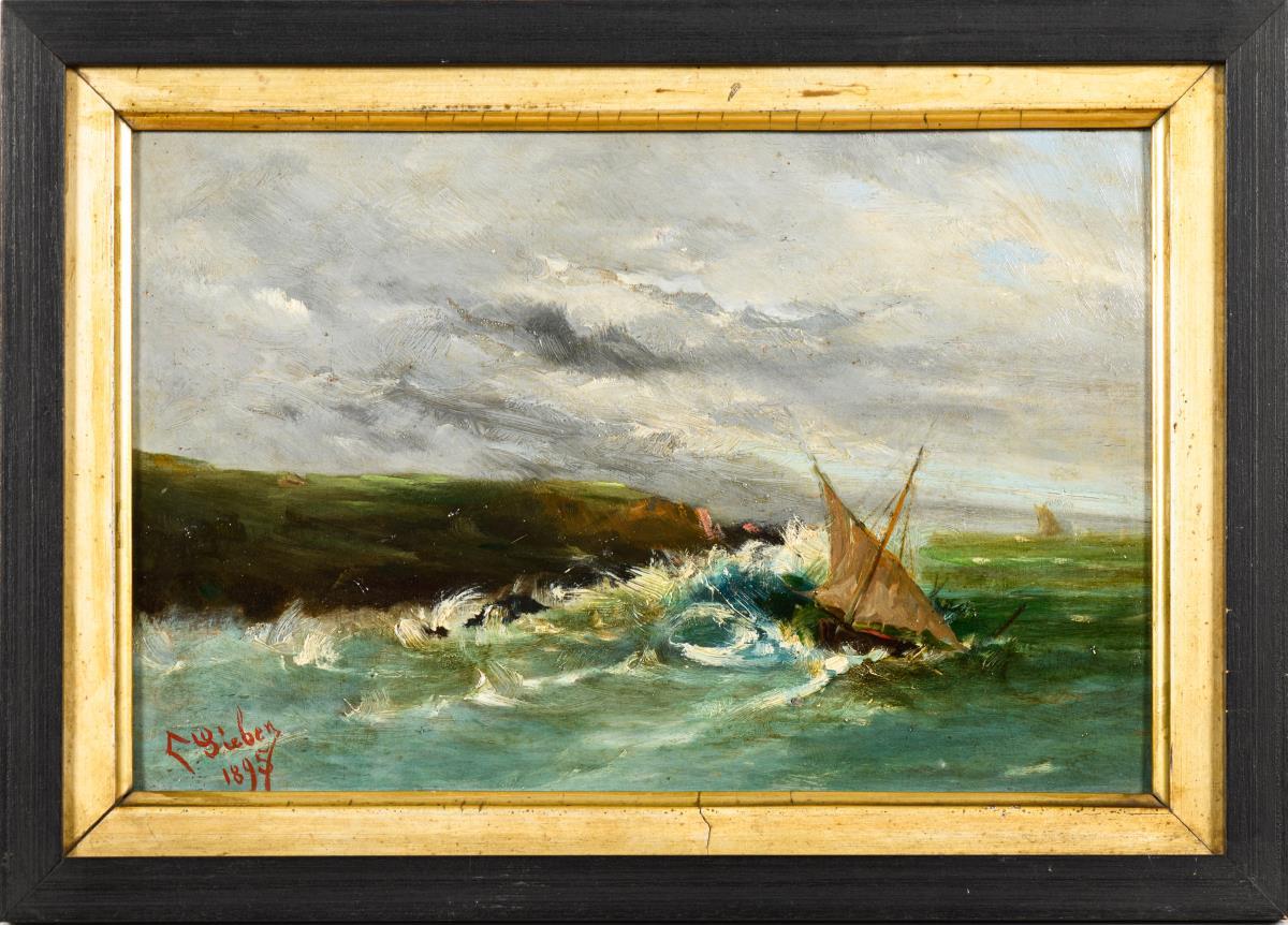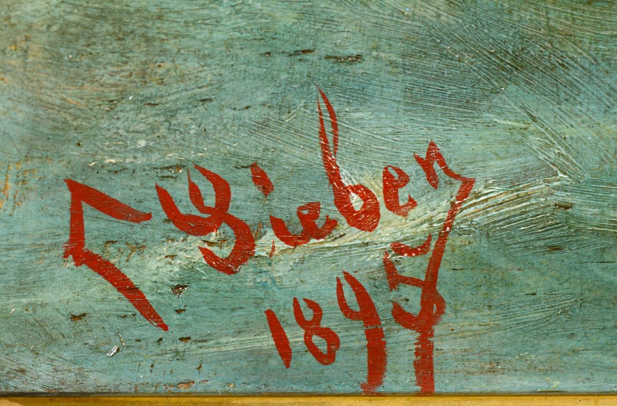 Öl/Holz. Links unten "Sieben" signiert. 1895.